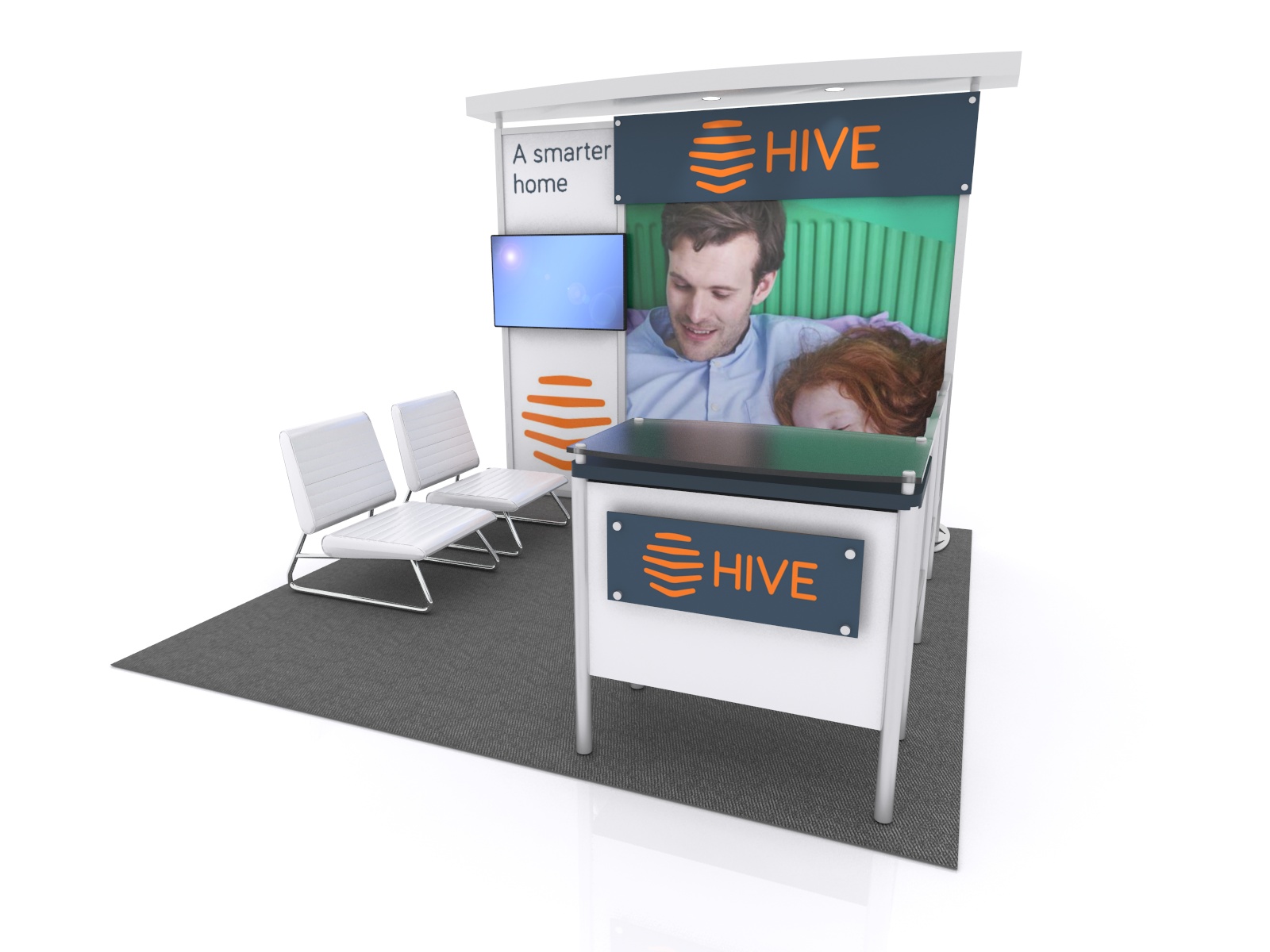 The VK-1044 and VK-2068 Hybrid Displays are popular choices, not because they are flashy, but because they reflect a refined simplicity with multiple A/V options. The large format fabric and direct print graphics ensure your marketing message is big and bold. The large monitor makes an ideal presentation tool for multiple attendees, and the lounge area is ideal for one-on-one demonstrations.