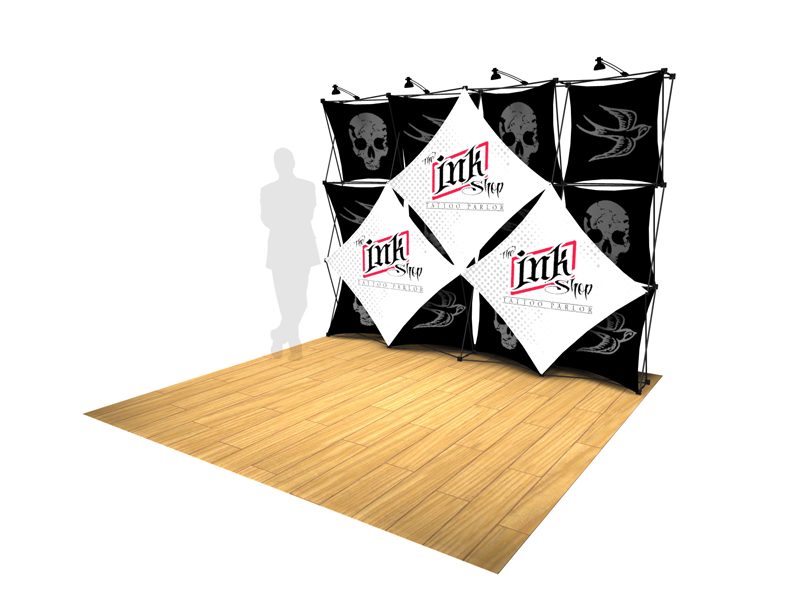 The XpressionsSNAP! Pop Up is wildly popular with trade show and special event designers. Easy to set-up and easy to use, Xpressions is the ultimate in-frame graphic technology! The display is shipped with the fabric skins fully attached to the frame. Change graphics easily in the field or every day of the show. The portable, lightweight frame makes your display set-up a SNAP! No tools or event labor required.