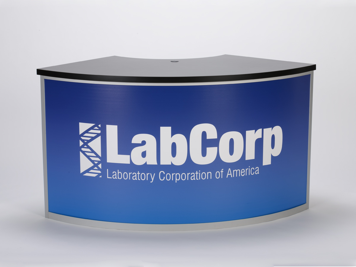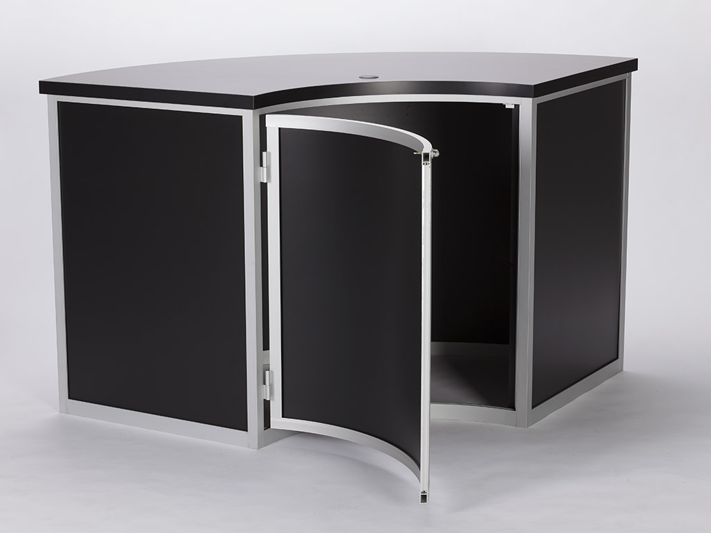 RE-1205   /   Large Curved Counter - Image 2Most counters and workstations offer bold graphic opportunities with attachable or removable infill panels. And they all come equipped with locking doors for secure storage. Need more than one. We have a large inventory of the most popular counters and pedestals.