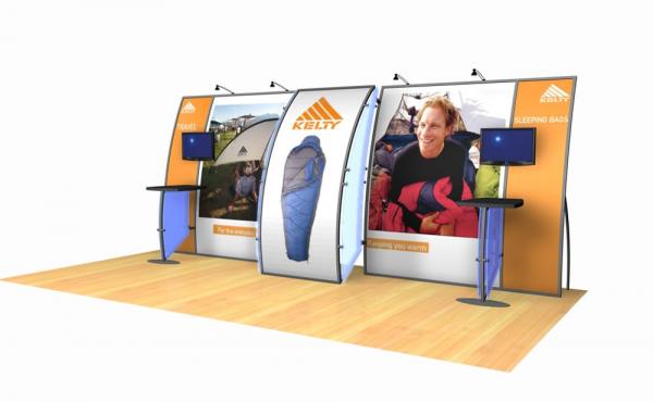 Hybrid is a relatively new category of trade show displays. Generally, hybrid displays incorporate aluminum extrusion, tension fabric, and other display components such as laminates, wood, Sintra, and other materials to create a tabletop, inline, or island exhibit.