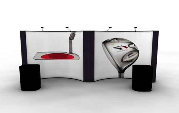 The rental exhibits gallery includes a variety of workstations with locking doors for storage, product shelves, and monitors. The arch-shape and flat canopies add an attractive design element to many rental design options. Most of the inline rental exhibits pack and ship in one crate and are easy to set up. For your peace of mind, we stage and photograph every exhibit before shipping to ensure your graphics look great and fit perfectly.