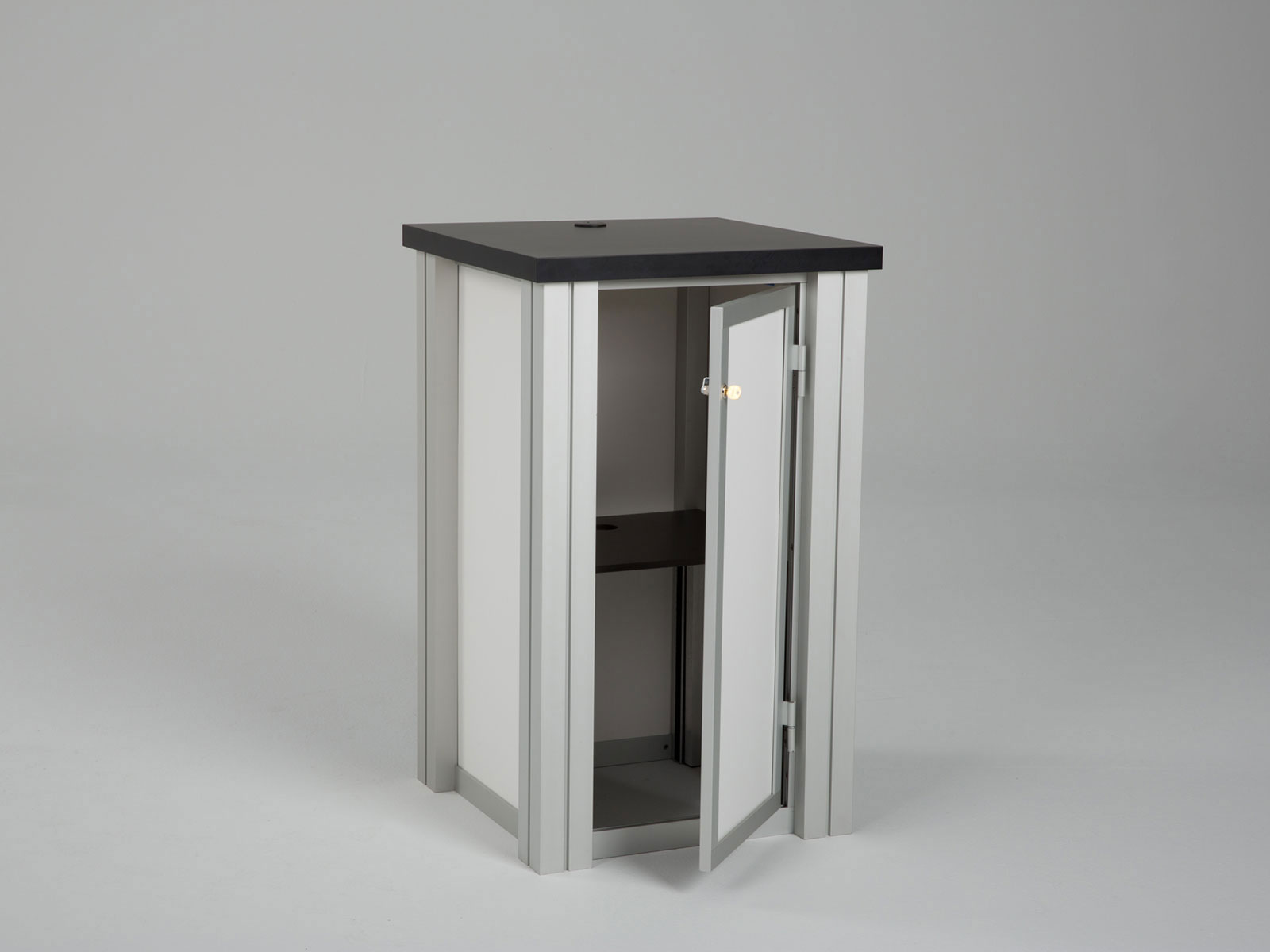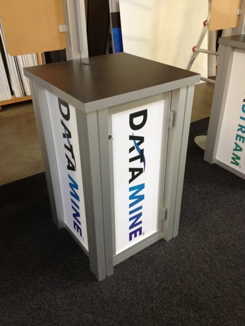 RE-1219 Rental Display / Square Pedestal Workstation -- Image 2Most counters and workstations offer bold graphic opportunities with attachable or removable infill panels. And they all come equipped with locking doors for secure storage. Need more than one. We have a large inventory of the most popular counters and pedestals.