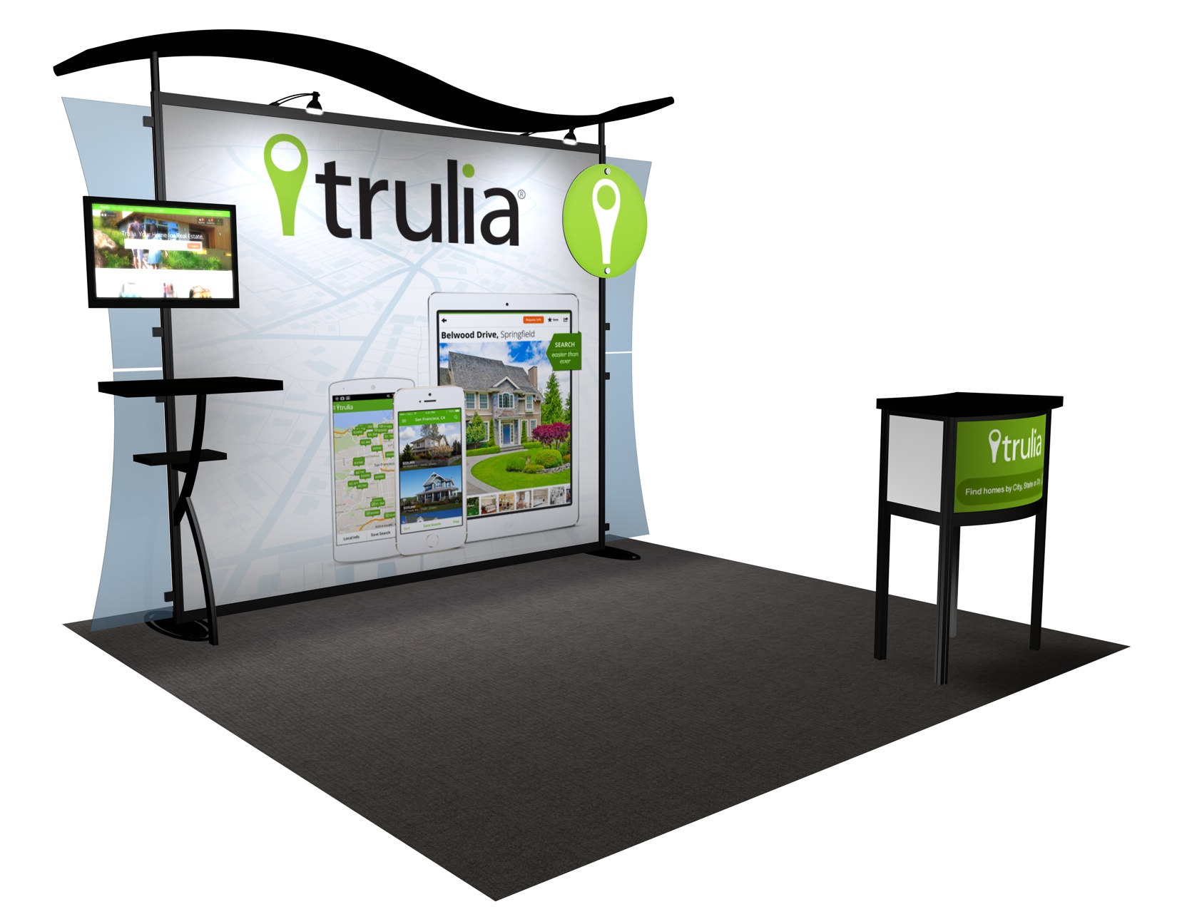 The affordable Sacagawea Portable Hybrid is a contemporary display designed with lightweight engineered aluminum and vibrant tension fabric graphics. Using knob-assisted assembly, the Sacagawea sets-up quickly, typically in less than 40 minutes for a 10 ft. display. All components are individually numbered and pack in durable roto-molded cases with custom die-cut foam packaging. Options include workstations, pedestals, fabric canopies, headers, iPad accessories, and monitors.