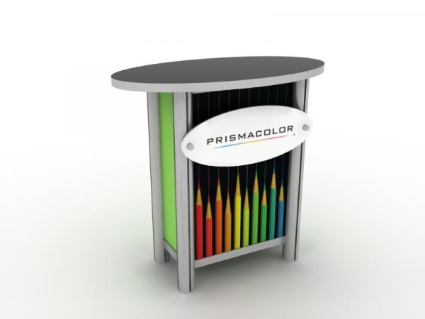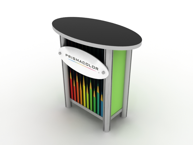 When choosing the right counter or pedestal for your display, consider how you will use it on the show floor. Do you need locking storage? Will the counter or pedestal hold a lead retrieval machine, laptop, or other electrical device? If so, you will need wire management. That may be as simple as ordering a grommet for the counter. If you are planning to use a tablet computer, consider the tablet insert option for the counter top. This option is practical, attractive, and secure for many tablets, such as an iPad.
