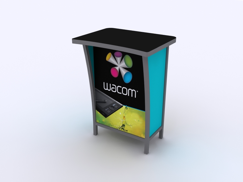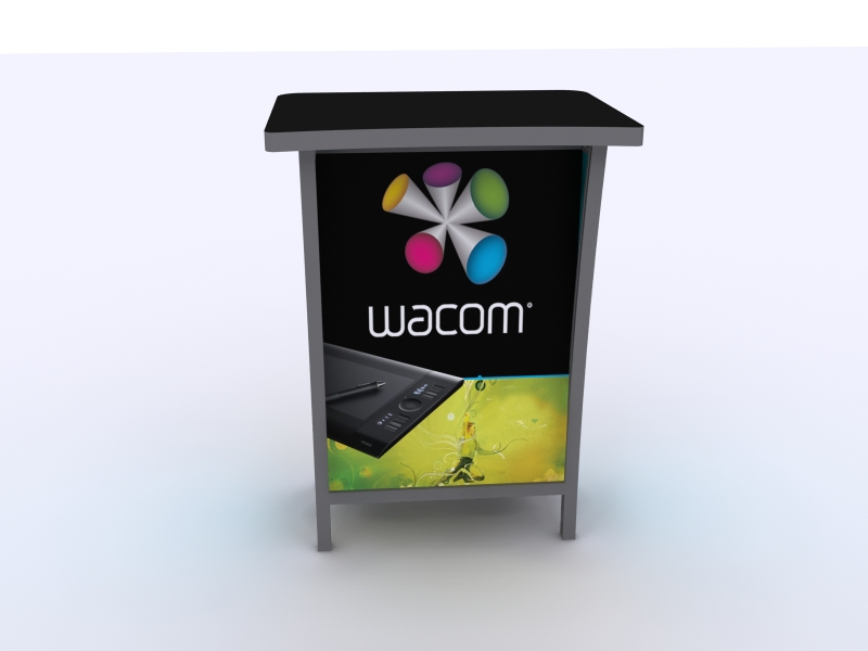 When choosing the right counter or pedestal for your display, consider how you will use it on the show floor. Do you need locking storage? Will the counter or pedestal hold a lead retrieval machine, laptop, or other electrical device? If so, you will need wire management. That may be as simple as ordering a grommet for the counter. If you are planning to use a tablet computer, consider the tablet insert option for the counter top. This option is practical, attractive, and secure for many tablets, such as an iPad.