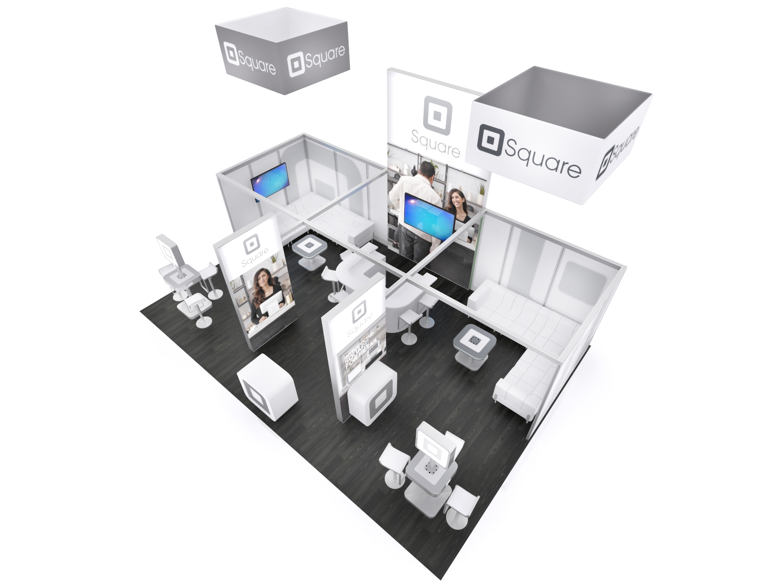 Island exhibits are displays bordering 3-4 aisles, with the smallest starting at 20’ x 20’. Inline exhibits, by contrast, typically border 1 or 2 aisles and are usually 10’ x 10’ or 10’ x 20’.