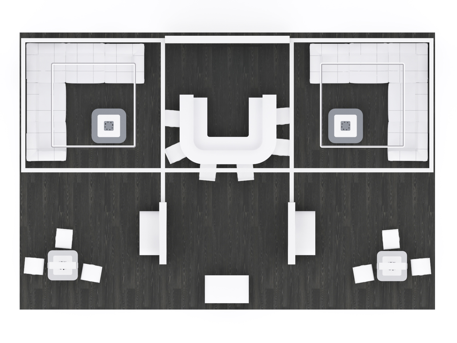 At every trade show, there's always one exhibit with an inviting vibe -- "Welcome. Relax. Spend some time away from all the chaos." The GK-5050 (RE-9130) is that booth. It blends large format backlit graphics and frosted acrylics into a casual space that includes multiple casual meeting areas. There are semi-private rooms with monitors and casual furniture, a large reception desk, and multiple charging stations to entice attendees. The overhead hanging signs make a statement in the exhibit hall, drawing attention and a crowd to the island exhibit. The GK-5050 is both a dramatic statement and a practical exhibit, perfect for any company that wants their trade show investment to create sales.