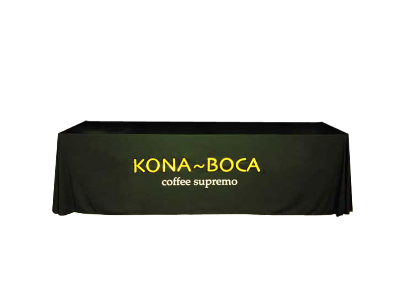 Maximum logo size is 45 in w x 19 in h Soft Touch Logo is a computer cut vinyl material. The vinyl is transferred to any standard color twill table throw with a high temperature heat press. The vinyl is permanently adhered and will not peel, crack, or fade. It can be washed and ironed. Please refer to our Soft Touch vinyl swatch cards for available colors. Additional Soft Touch vinyl colors may be available – please call if you do not find the color you need.