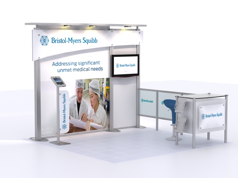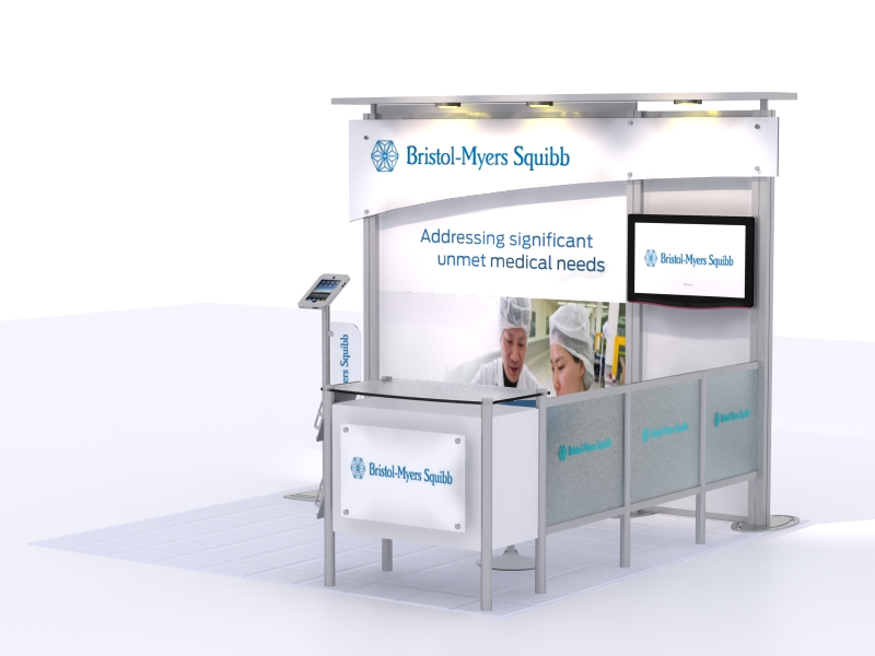 The VK-1044 and VK-2068 Hybrid Displays are popular choices, not because they are flashy, but because they reflect a refined simplicity with multiple A/V options. The large format fabric and direct print graphics ensure your marketing message is big and bold. The large monitor makes an ideal presentation tool for multiple attendees, and the iPad Kiosk with graphics is perfect for one-on-one demonstrations.