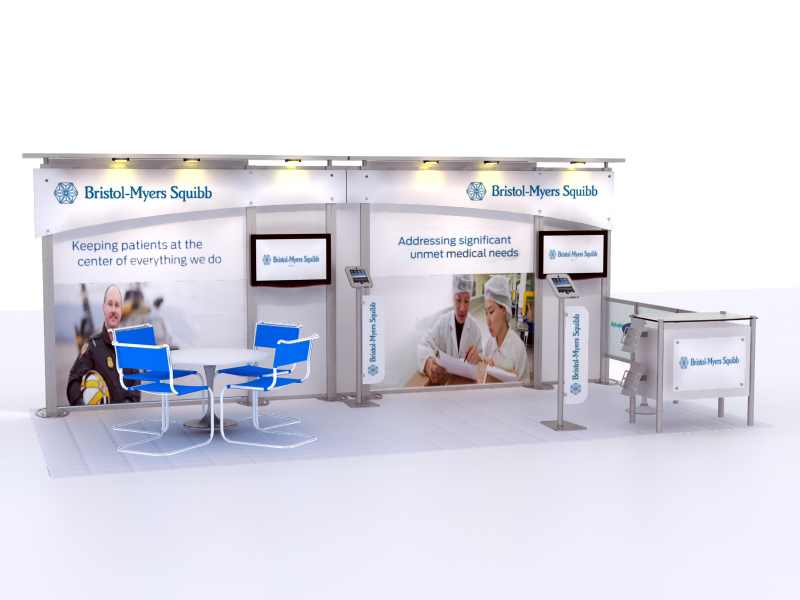 The reception desk has ample storage for literature and personal items, and the standoff graphics reinforce your branding from the aisle. It also includes two aluminum literature holders. Best of all, the 10 ft. VK-1044 expands to the 20 ft. VK-2068 for larger shows when you need a conference area.