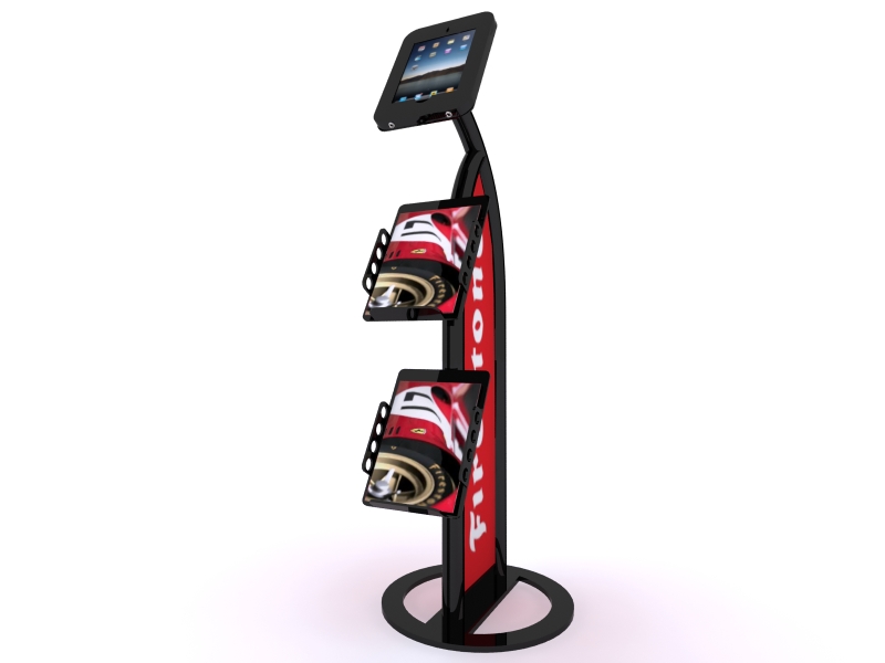 MOD-1357 iPad Stand PhotosSwivel Stop -- Portrait to Landscape RotationMOD-1357 iPad Kiosk with Literature Holders -- SilverMOD-1357 iPad Kiosk with Literature Holders -- Image 1MOD-1357 iPad Kiosk with Literature Holders -- BlackMOD-1357 iPad Kiosk with Literature Holders -- WhiteAnti-theft Clamshell FrameWire/Cord Management -- Excludes iPad Extension CordOptional LT-550 Roto-molded Case with Wheels and Reusable PackagingSee MOD-1357M for the Surface 2 Tablet Version