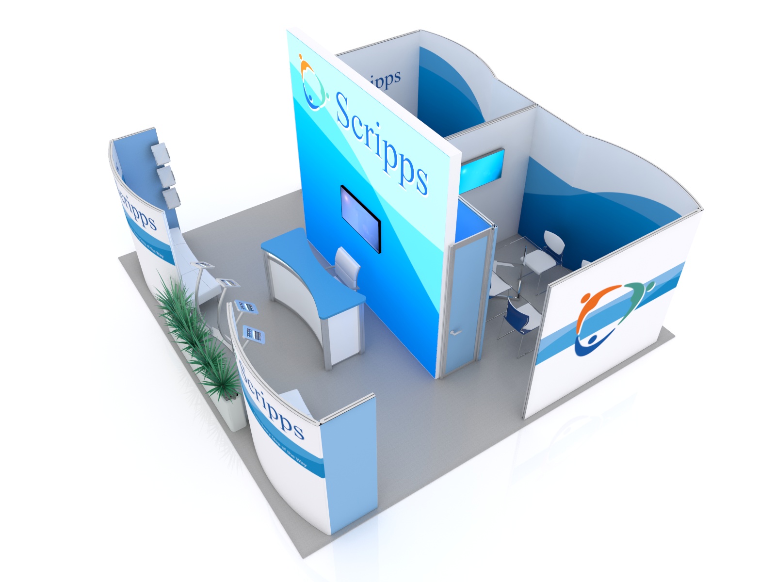 Island exhibits are displays bordering 3-4 aisles, with the smallest starting at 20’ x 20’. Inline exhibits, by contrast, typically border 1 or 2 aisles and are usually 10’ x 10’ or 10’ x 20’.