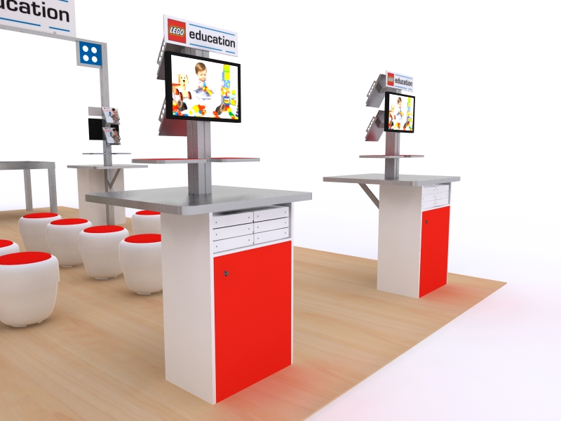 VK-5007 Trade Show Exhibit -- Image 1Don't let the graphics fool you. This is an ideal island display for any product or service. First, re-configuring your stunning island to inlines has never been easier. The VK-5008 and VK-5007 are high impact islands with practical workstations, monitor stands, and storage. The VK-1112 and VK-2951 take the best of the islands into kid-friendly inlines with play areas and interactive workstations. Second, all the designs have ample floor space, making it easy to interact with clients or to let kids be kids. The large format graphics ensure you'll be seen in whatever configuration you choose.