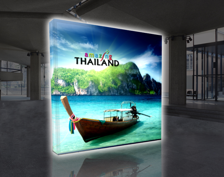 Available as either a flat or curved display in a variety of sizes from 5 ft x 5 ft table tops to enormous 12 ft x 7 ft standing displays! The fabric graphics eliminate any glare making them ideal for media backwalls. Every VBurst comes with a nylon carrying bag and adjustable feet.