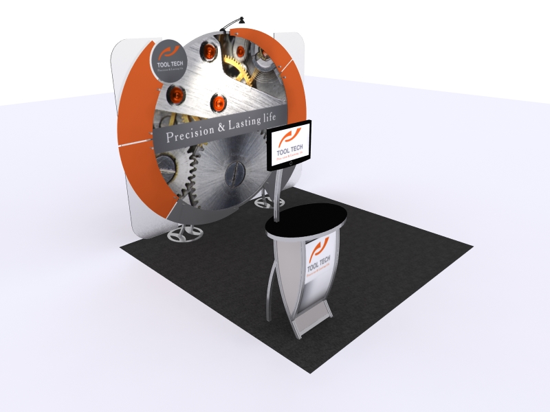 If 50 is the new 30, then circles and curves are the new squares and rectangles. Here's the bottom line: You go to a trade show to be seen, so be seen with an exhibit that elicits "Oohs and Aahs." Don't settle. The VK-1320 and VK-2919 do more than communicate your message with bold tension fabric graphics and colorful accent wings. They have a power and presence to stop an attendee in the aisle. That's what you want from a trade show display. Both reconfigurable 10 ft. and 20 ft. versions come with VK-1605 workstation, which is perfect for an A/V demo or just guiding a potential client through your website.