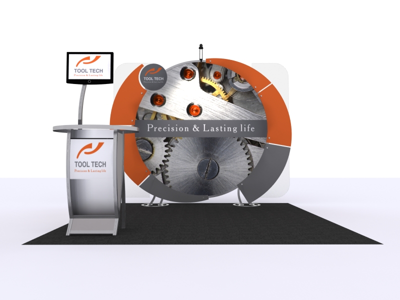 If 50 is the new 30, then circles and curves are the new squares and rectangles. Here's the bottom line: You go to a trade show to be seen, so be seen with an exhibit that elicits "Oohs and Aahs." Don't settle. The VK-1320 and VK-2919 do more than communicate your message with bold tension fabric graphics and colorful accent wings. They have a power and presence to stop an attendee in the aisle. That's what you want from a trade show display. Both reconfigurable 10 ft. and 20 ft. versions come with VK-1605 workstation, which is perfect for an A/V demo or just guiding a potential client through your website.