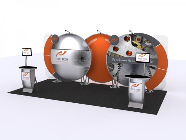 If 50 is the new 30, then circles and curves are the new squares and rectangles. Here's the bottom line: You go to a trade show to be seen, so be seen with an exhibit that elicits "Oohs and Aahs." Don't settle. The VK-1320 and VK-2919 do more than communicate your message with bold tension fabric graphics and colorful accent wings. They have a power and presence to stop an attendee in the aisle. That's what you want from a trade show display. Both reconfigurable 10 ft. and 20 ft. versions come with VK-1605 workstation, which is perfect for an A/V demo or just guiding a potential client through your website.
