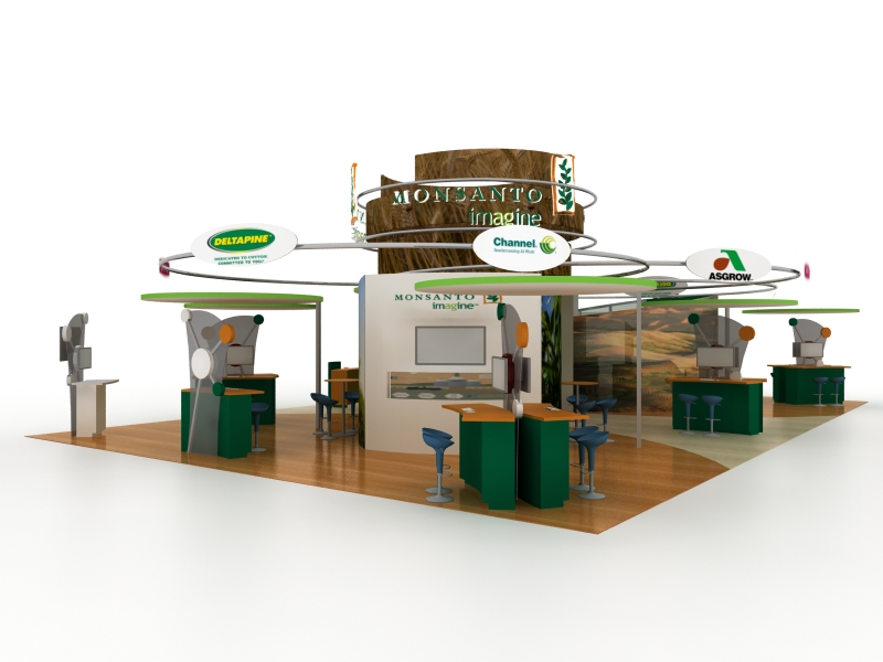 DM-1061 Trade Show Exhibit -- Image 1This is an ideal island display for any product or service. First, re-configuring your stunning island to inlines has never been easier. The DM-1061 is high impact island with practical workstations, monitor stands, and storage. Turn the 40 x 60 into a 20 ft. or 30 ft island using same components. Second, all the designs have ample floor space, making it easy to interact with clients. The large format graphics ensure you'll be seen in whatever configuration you choose.