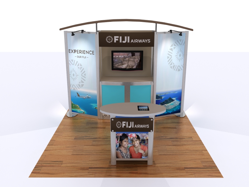 Every exhibitor has their unique marketing goals and budget, which is why there's no one perfect display. The VK-1053 and VK-2066 hybrid designs blend the benefits of multiple large format tension fabric graphics with convenient storage and audio/visual options. The engineered aluminum frame is attractive, durable, and easy-to-assemble. The modular components allow for reconfigurability and expansion. The two reception counters include iPad Counter inserts. The iPad inserts are ideal demo stations, and design makes it simple to remove them at the end of the day.