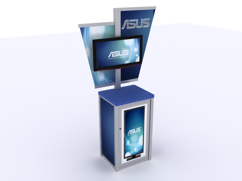 Workstations and Kiosks have become indispensable to most trade show displays. It's hard to imagine a booth without a monitor, laptop, or tablet computer anymore. You'll find nearly 100 choices in the Workstation and Kiosk gallery at a range of prices and features, many with locking storage. Most are modular, meaning they disassemble for shipping, but there are quite a few custom workstations which ship fully assembled. Don't see exactly what you want? No problem. We specialize in designing and building workstations and kiosks that meet any need.