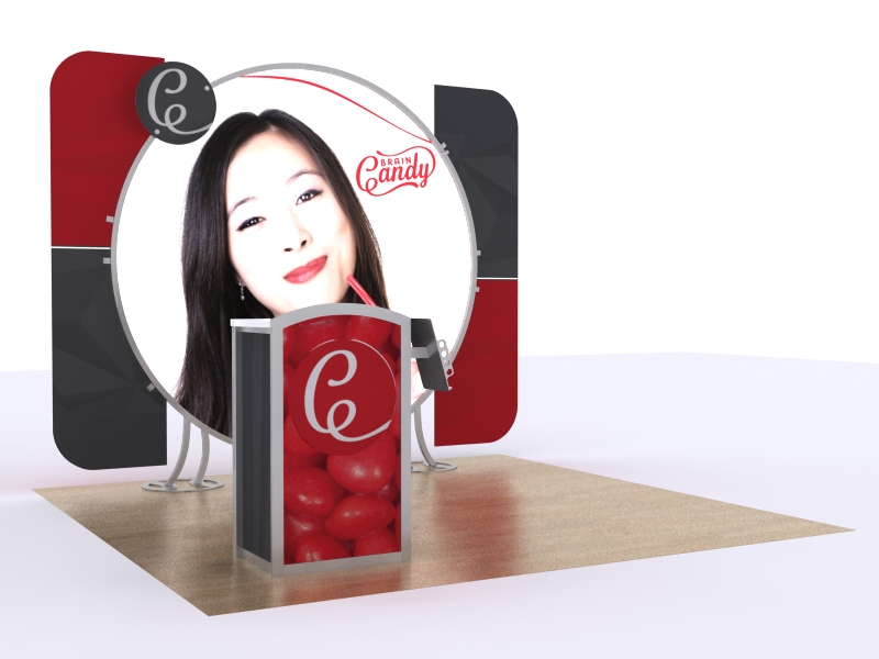 If 50 is the new 30, then circles and curves are the new squares and rectangles. Here's the bottom line: You go to a trade show to be seen, so be seen with an exhibit that elicits "Oohs and Aahs." The VK-1119 and VK-2960 do more than communicate your message with bold tension fabric graphics and colorful accent wings. They have a power and presence to stop an attendee in the aisle. That's what you want from a trade show display. Both reconfigurable 10 ft. and 20 ft. versions come with the MOD1297 counter, which is perfect for welcoming a client into your booth.
