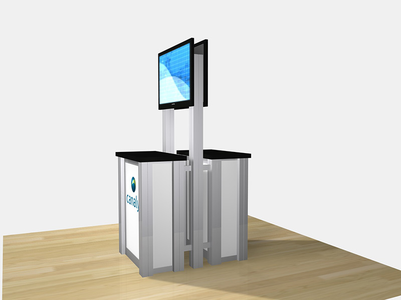 We offer a HUGE selection of contemporary rental accessories, including workstations, kiosks, conference tables, reception counters, display cases, cell phone charging stations, and iPad stands. Any of these components can be integrated into the inline or island designs, or rented as single units to add to your existing exhibit.