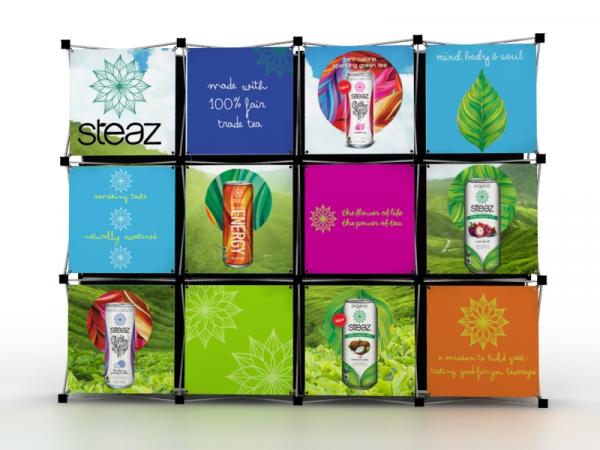 FG-121 Trade Show Pop Up DisplayThe Quadro Floating Graphic System (FGS) combines convenience and graphic pizzazz into an affordable, portable display. The Quadro frame expands in seconds, and the graphics attach easily with flexible rings. Need to change a graphic for a new product or marketing campaign? No problem. The individual panels make switching graphics quick and cost-effective. Elevate your presentation even more with a stylish printed lycra case wrap, instantly turning storage into a counter. Add lights and a backwall shelf for even more impact. The entire display assembles quickly, and disassembles even faster for a quick exit.