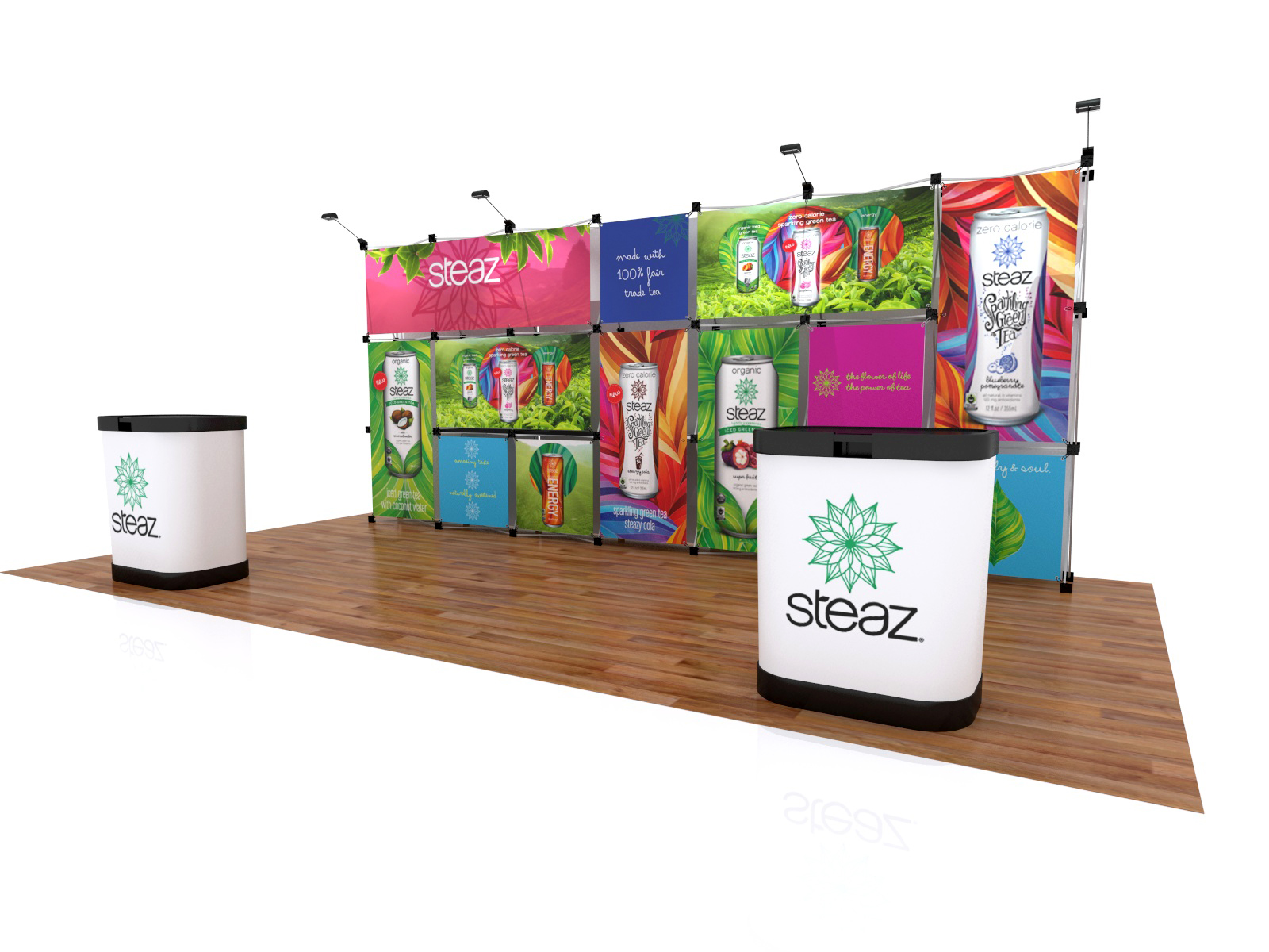 • Optional Lights, Backwall Shelf, and Lycra Wrap