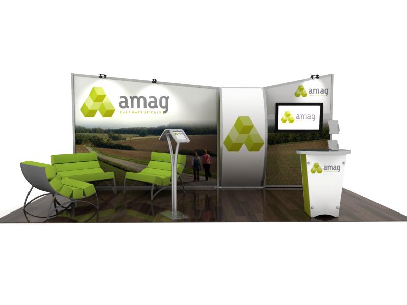 You want tradeshow attendees to "stop and stare." It's only natural. The VK-1103 and VK-2966 are unlike any other display you'll see (and that's a good thing). The angled backwall with the curved graphics demands attention. The tension fabric graphics are colorful, lightweight, and affordable. The MOD-1334 iPad Kiosk adds multimedia to your booth without the hassle of a large monitor or complicated set-up. And don't forget the LTK-1001 tapered pedestal with locking storage, no-tools assembly, and graphic branding on the front panel.