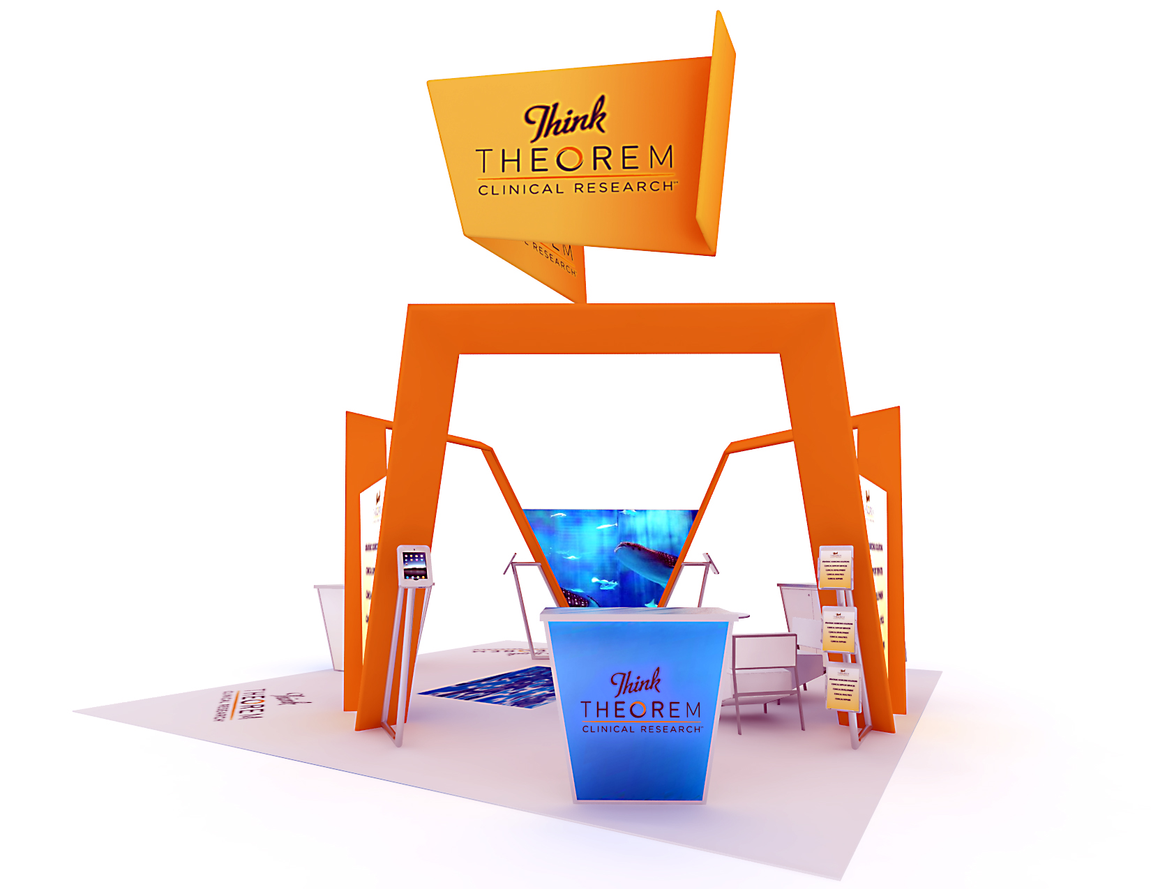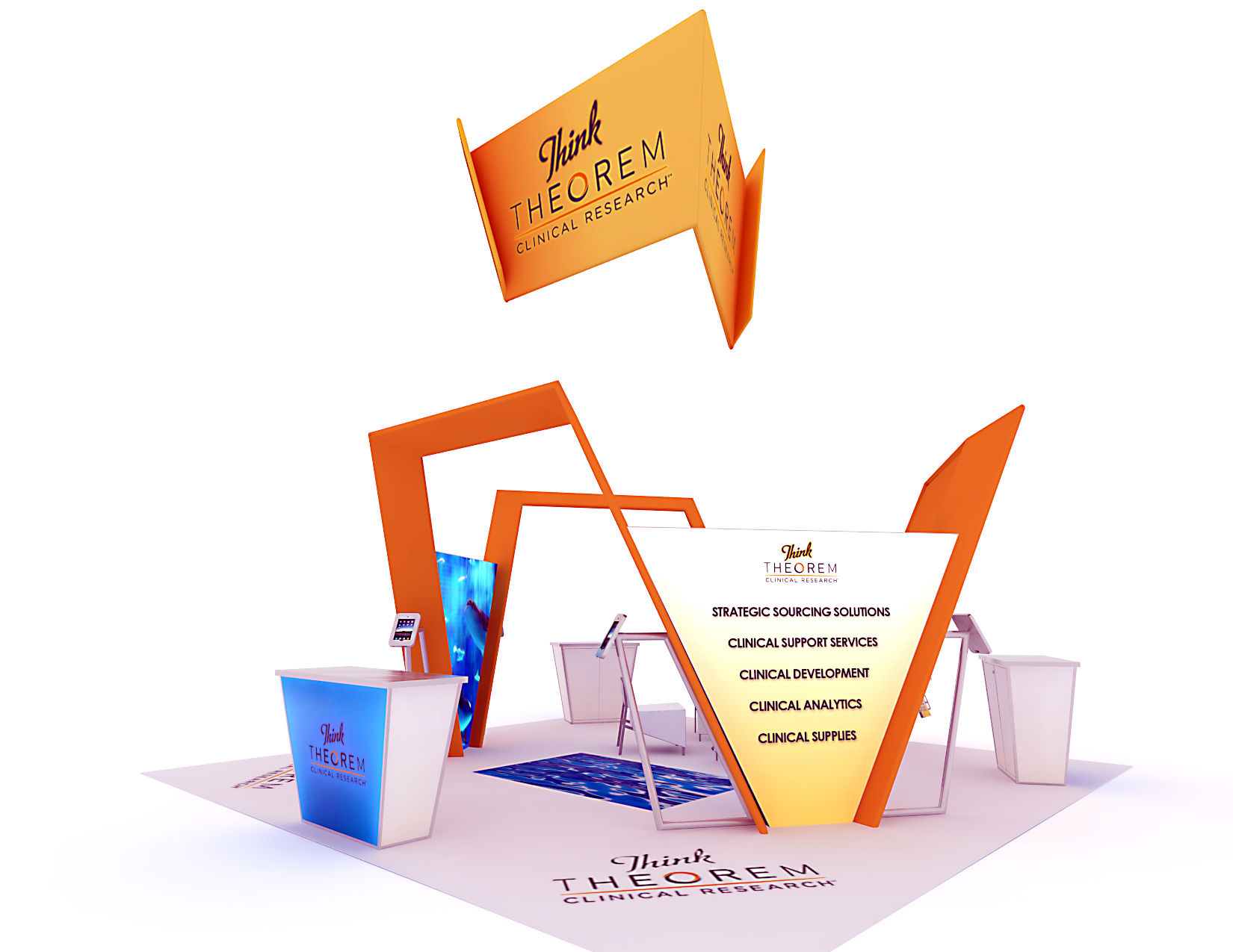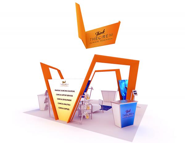 It's time you made a statement. The VK-5130 stands apart from other islands with dramatic arches, large backlit graphics, and a custom hanging sign. Let your competitors be boring with boxy exhibits and ho-hum graphics. You want to attract attention. The VK-5130 blends perimeter backlit graphics and open arches with inviting openings. Attendees will be welcome by staffers at backlit counters and then directed to tablet kiosks or literature stations. Once it's time to seal the deal, the exhibit has a casual meeting area to get down to brass tacks. All the counters include locking storage so there's ample room for brochures, promotional products, purses, and briefcases.