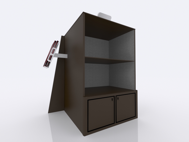 There are nearly 200 choices in the Counters and Pedestals gallery at a range of prices and features. Nearly all come with locking storage. Most counters and pedestals are modular, meaning they disassemble for shipping, but there are quite a few custom counters which ship fully assembled. Don't see exactly what you want? No problem. We specialize in designing and building counters and pedestals that meet any need.