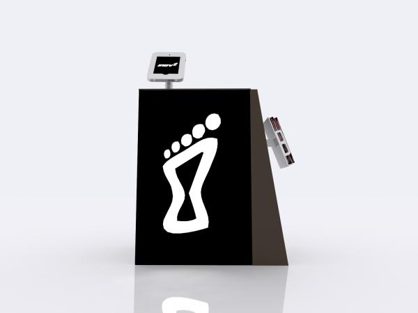 When choosing the right counter or pedestal for your display, consider how you will use it on the show floor. Do you need locking storage? Will the counter or pedestal hold a lead retrieval machine, laptop, or other electrical device? If so, you will need wire management. That may be as simple as ordering a grommet for the counter. If you are planning to use a tablet computer, consider the tablet insert option for the counter top. This option is practical, attractive, and secure for many tablets, such as an iPad.