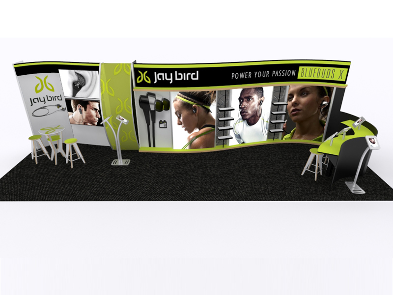 Like most exhibitors, you want options because your exhibit marketing program will change. That's a given. The VK-1331, VK-2974, and VK-3007 fit those requirements. The cost-effective, vibrant fabric graphics are a snap to replace. There are three lightboxes on the 20 and 30 ft. inlines. All configurations have a curved pillowcase header, not to mention non-backlit large format graphics. In addition, there are large monitors, shelving, iPad or tablet stations, and portable, brandable furniture. Easily go from a 10 ft. inline to a 30 ft. exhibit depending on the show. And the price... very affordable compared to fully custom exhibit. There's no question, this exhibit, whether the 10 ft., 20 ft., or 30 ft. version, will be the star of your trade show.