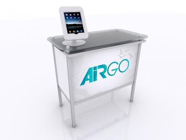 When choosing the right counter or pedestal for your display, consider how you will use it on the show floor. Do you need locking storage? Will the counter or pedestal hold a lead retrieval machine, laptop, or other electrical device? If so, you will need wire management. That may be as simple as ordering a grommet for the counter. If you are planning to use a tablet computer, consider the tablet insert option for the counter top. This option is practical, attractive, and secure for many tablets, such as an iPad.
