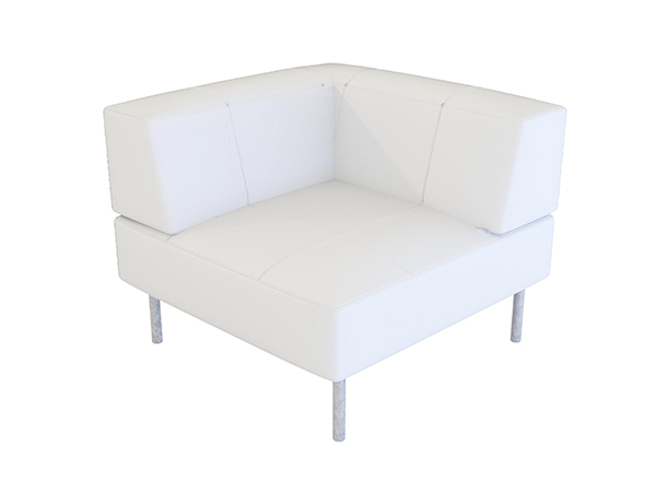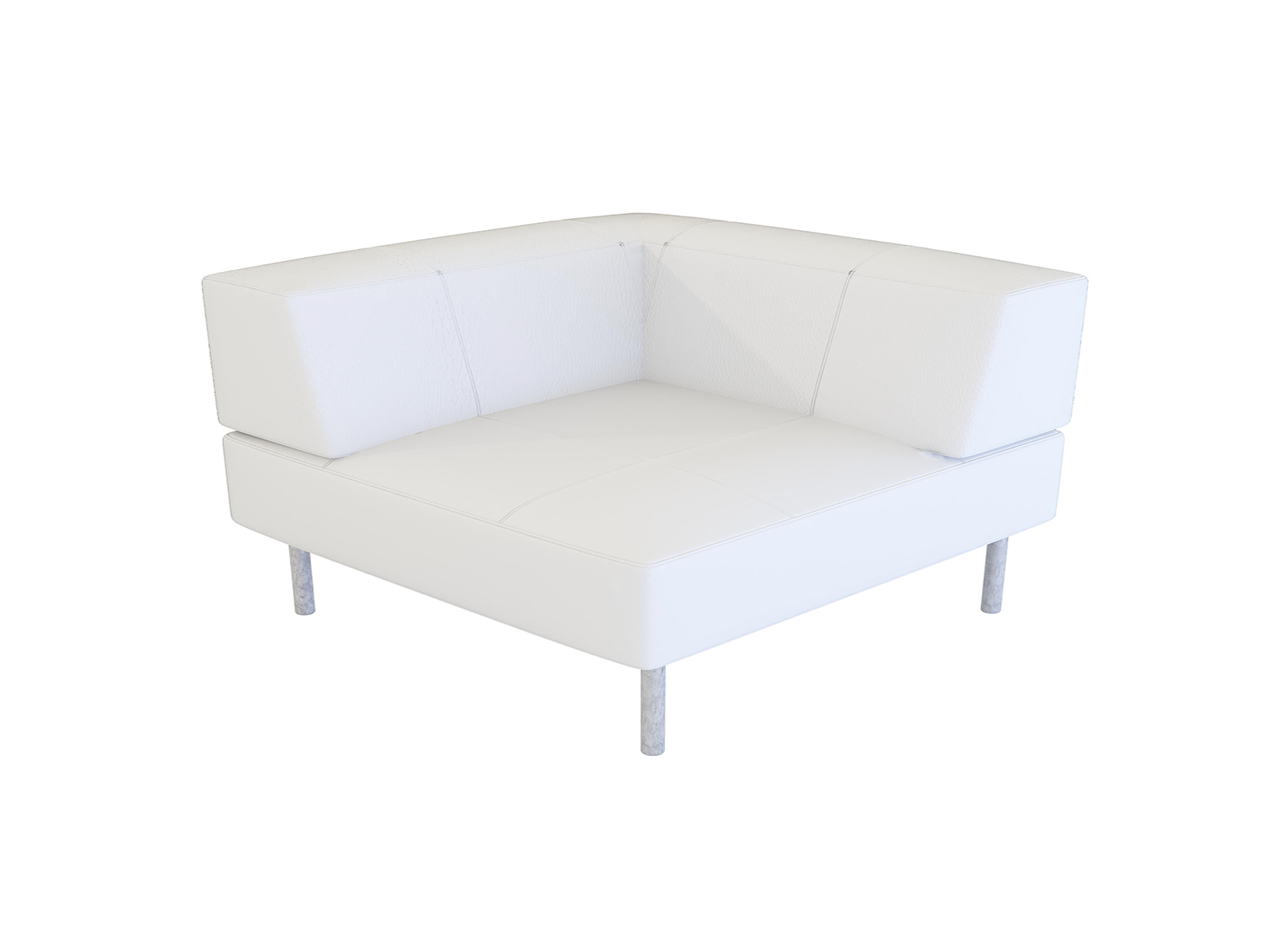 Modular white vinyl corner chair with chrome legs. Size = Length 34.5 ", Depth 34.5'' , Height: 27".