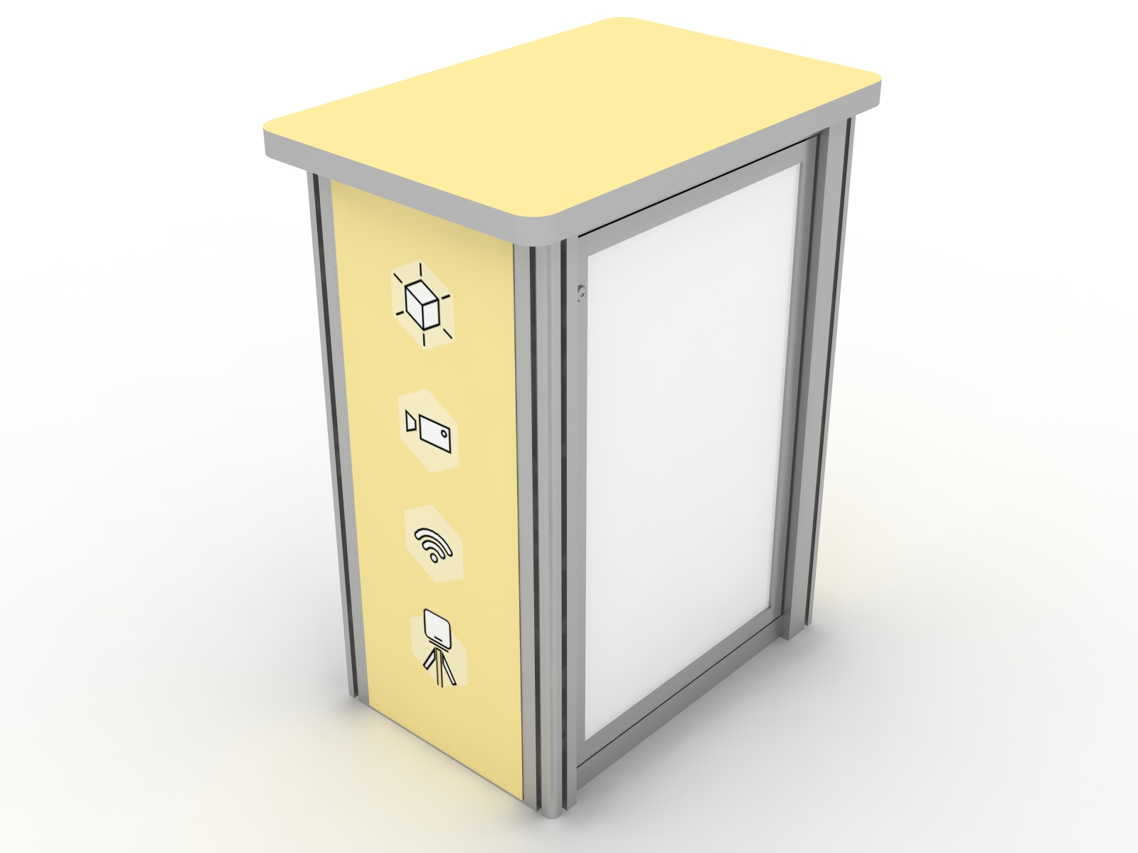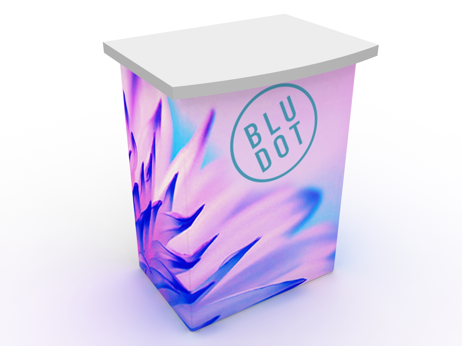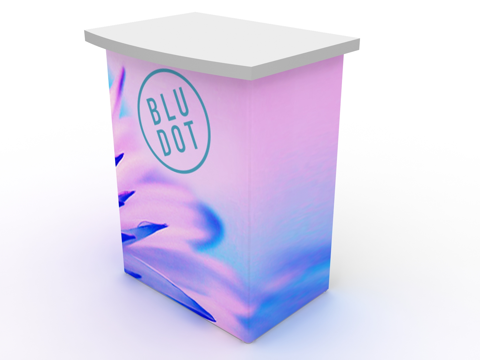 When choosing the right counter or pedestal for your display, consider how you will use it on the show floor. Do you need locking storage? Will the counter or pedestal hold a lead retrieval machine, laptop, or other electrical device? If so, you will need wire management. That may be as simple as ordering a grommet for the counter. If you are planning to use a tablet computer, consider the tablet insert option for the counter top. This option is practical, attractive, and secure for many tablets, such as an iPad.
