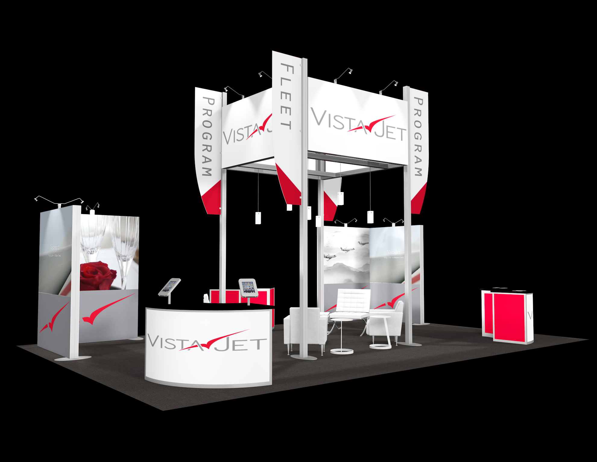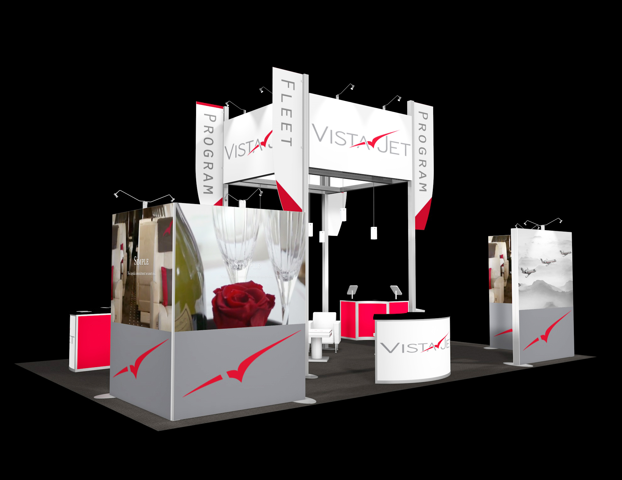 The Rental Island Exhibits go way beyond a pretty picture. We've incorporated key features such as large graphics, private and semi-private conference rooms, towers with locking storage access, and workstations and reception counters with secure storage. Not enough? Then add product shelves, large and small monitors for presentations, a variety of light fixtures, and hanging signs for high visibility from anywhere on the show floor. We also offer three contemporary double-deck configurations.