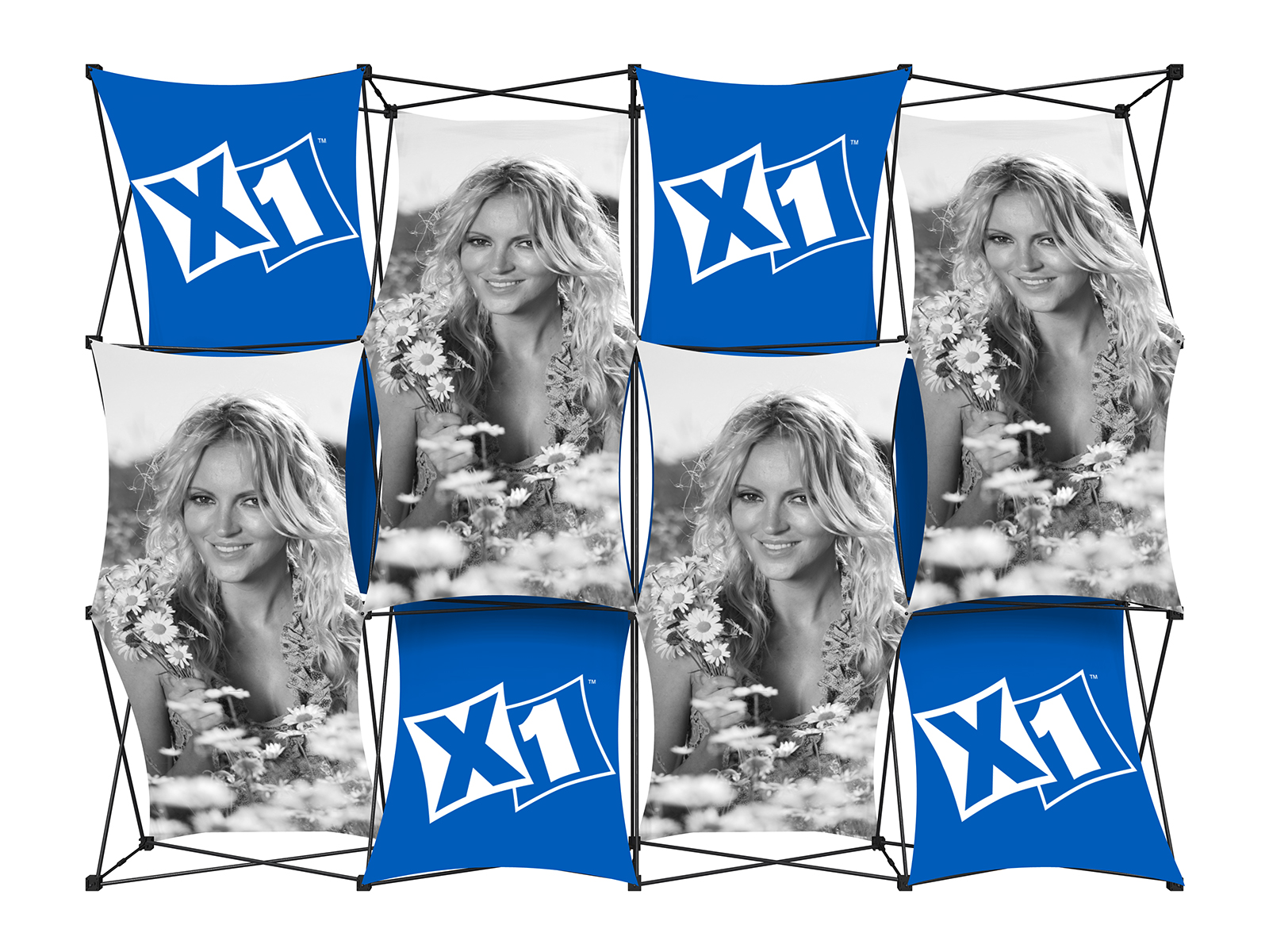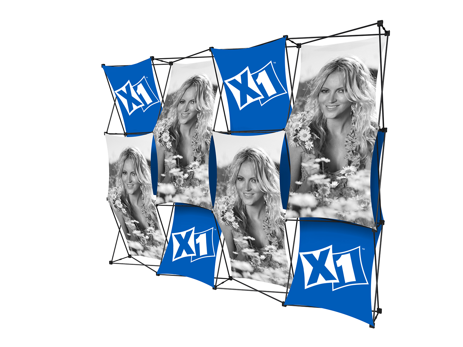The X1 10ft 4x3 Popup Display is a versatile no tools stretch fabric pop-up display system. Available designs and custom display options bring excitement and flexibility to your exhibit. The X1 is easy to setup, ultra lightweight and portable and even easier to take down. Be off to your next appointment or relaxing while the competition is still sweating through the exhibit break down process. The collapsible pop-up frame uses magnetic connectors with the option of J-hook connectors for more custom or weight bearing displays. Stretch fabric graphics come pre-attached to the frame, and are easily changed out in the field! Kits come with graphics, frame and drawstring carry bag. Kits displayed are our most popular versions. Eight additional frames available plus custom options per request and hundreds of graphic configurations available.