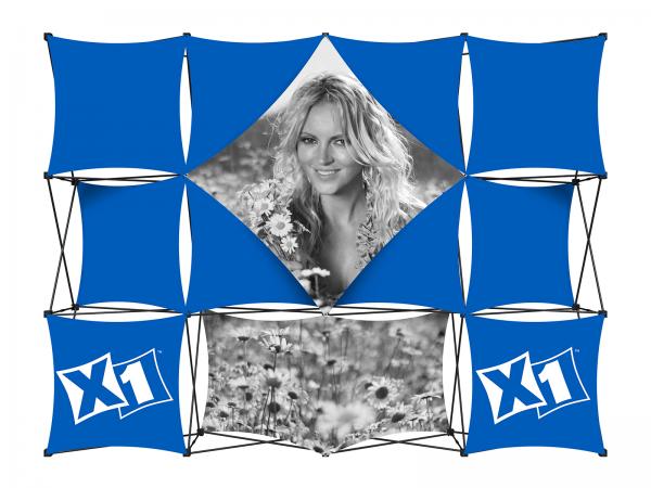The X1 10ft 4x3 Popup Display is a versatile no tools stretch fabric pop-up display system. Available designs and custom display options bring excitement and flexibility to your exhibit. The X1 is easy to setup, ultra lightweight and portable and even easier to take down. Be off to your next appointment or relaxing while the competition is still sweating through the exhibit break down process. The collapsible pop-up frame uses magnetic connectors with the option of J-hook connectors for more custom or weight bearing displays. Stretch fabric graphics come pre-attached to the frame, and are easily changed out in the field! Kits come with graphics, frame and drawstring carry bag. Kits displayed are our most popular versions. Eight additional frames available plus custom options per request and hundreds of graphic configurations available.