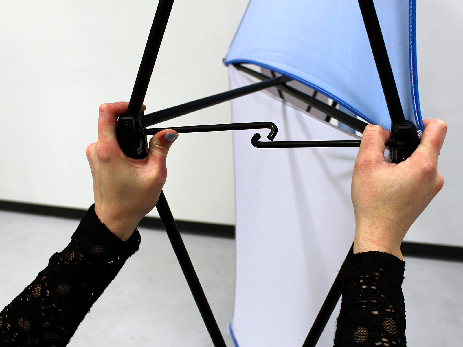 Self-locking pop-ups are perfect for Velcro compatible fabrics and murals, but are not ideal for tension fabric graphics We use a frame with manual locks because it creates a more rigid structure which evenly pulls out any wrinkles or folds in the fabric graphic. The result is a taut flat graphic that mimics a hard panel graphic.