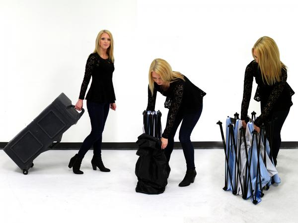 Fabric will wrinkle and fold lines may appear if a fabric graphic has been stored or folded for a long time, but the wrinkles are not permanent. Whenever possible, always store your displays set-up. Many people have their display set-up in the company waiting or conference room!