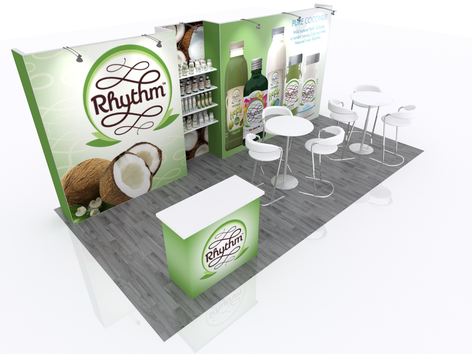 Hybrid is a relatively new category of trade show displays. Generally, hybrid displays incorporate aluminum extrusion, tension fabric, and other display components such as laminates, wood, Sintra, and other materials to create a tabletop, inline, or island exhibit.