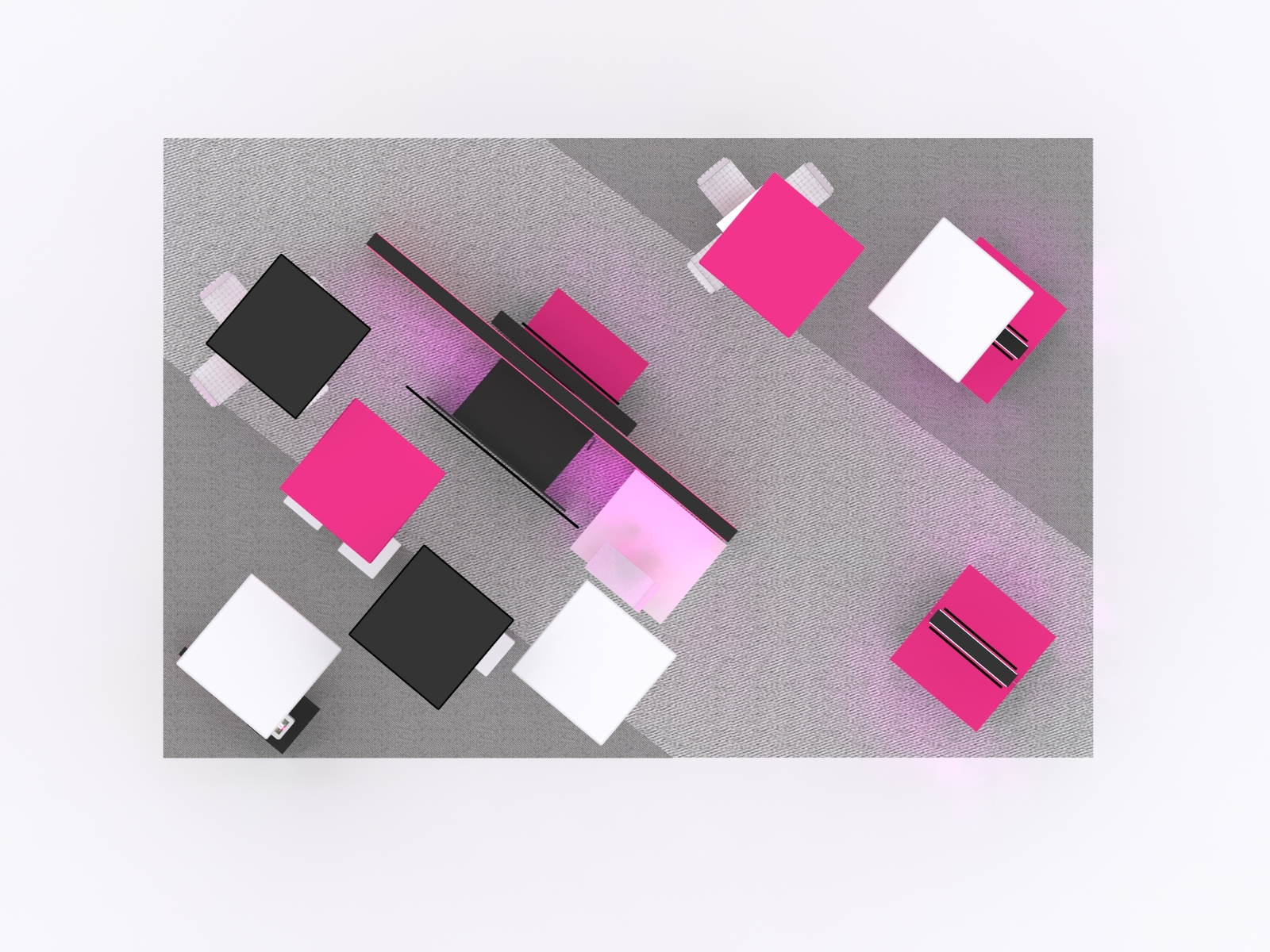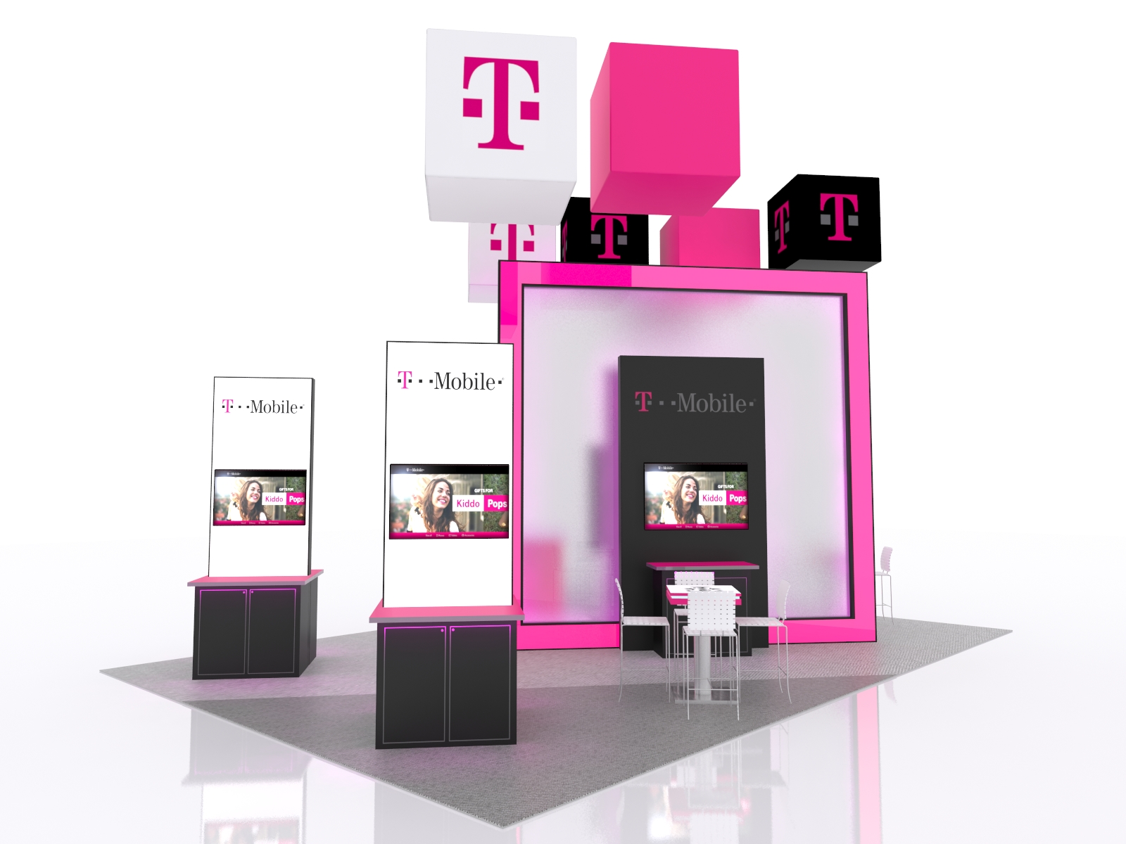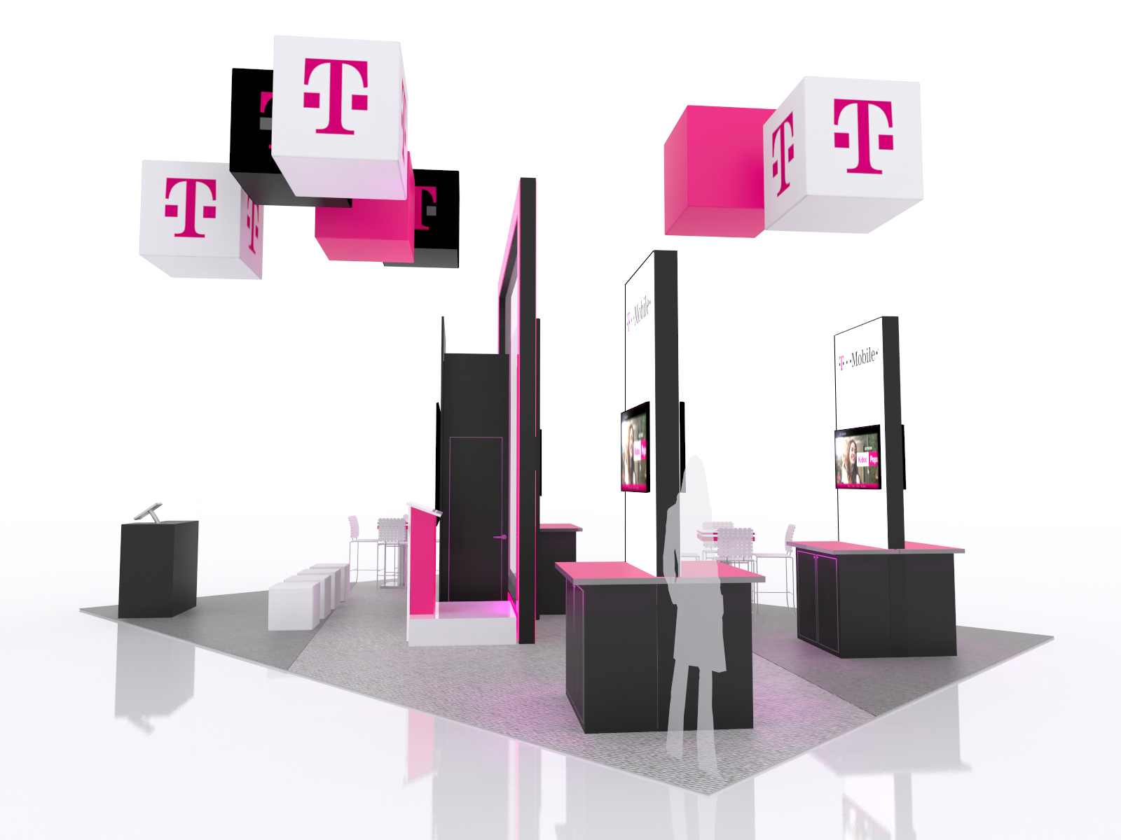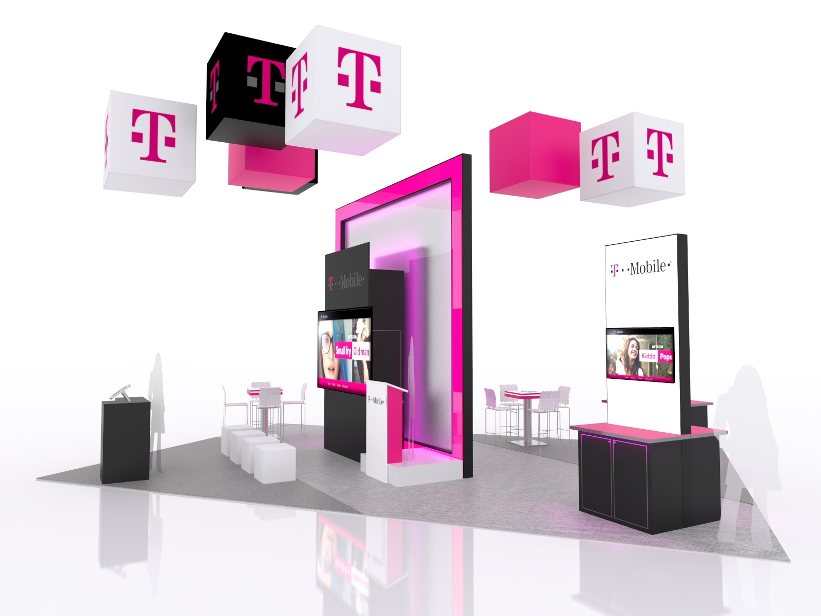 The VK-5149 makes a statement: sophisticated, modern, memorable. This unmistakable island blends a large, open presentation stage with casual meeting space and demonstration towers. The extensive LED backlighting beacons attendees to the booth. The presentation, meeting, and demo areas allow for targeted attendee interaction based on their experience and time. The hidden full-size closets allow for ample and convenient storage. There's even custom reception desk to guide potential customers to booth staff. Finally, the seven hanging signs are an exclamation point on an already unforgettable booth, drawing attention to the exhibit from every angle in the trade show hall.