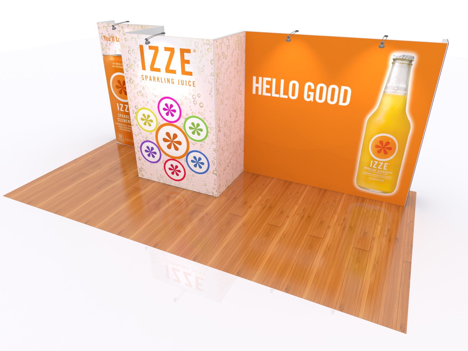 It's as if we read your mind. You wanted a distinctive custom design, easy to assemble (without tools), lightweight construction, and modular reconfigurability. Welcome to Gravitee! The Gravitee One-Step System features single/double-sided panels that connect without tools or loose parts, SEG or fabric graphics, fully assembled flat or curved panels, and a wide range of accessories. The GK-1004 even comes with a full-size door and a closet. The entire display packs in a fabric-lined, fully jigged custom crate. Each component is numbered for effortless assembly.