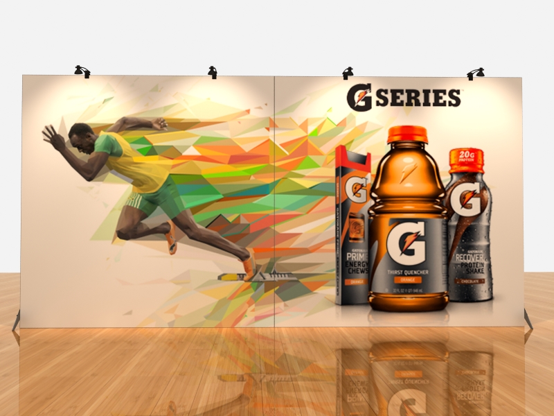 If you are considering a pop up display, then consider the SEGUE Sunrise instead. The Sunrise offers all the advantages of a pop up -- portability, ease of set-up, and a large graphic – with the benefits of a large format tension fabric graphic, aluminum frame, and no-tools assembly. Assembly takes less than 40 minutes for most kits. Best of all, the 7 ½ x 7 ½ silicone edge graphic guarantees a perfect fit every time, and the fabric graphics mean worry-free performance from show to show. You can even wash them.