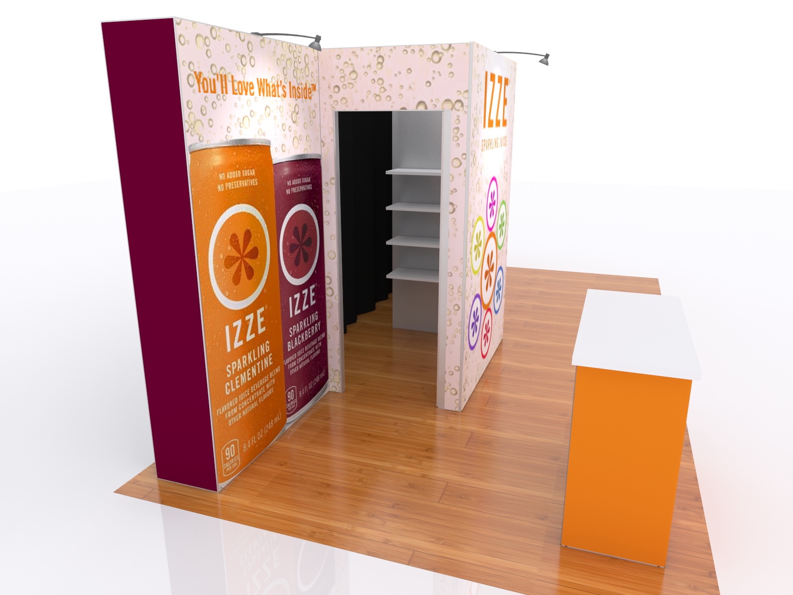 It's as if we read your mind. You wanted a distinctive custom design, easy to assemble (without tools), lightweight construction, and modular reconfigurability. Welcome to Gravitee! The Gravitee One-Step System features single/double-sided panels that connect without tools or loose parts, SEG or fabric graphics, fully assembled flat or curved panels, and a wide range of accessories. The GK-1004 even comes with a full-size door and a closet. The entire display packs in a fabric-lined, fully jigged custom crate. Each component is numbered for effortless assembly.