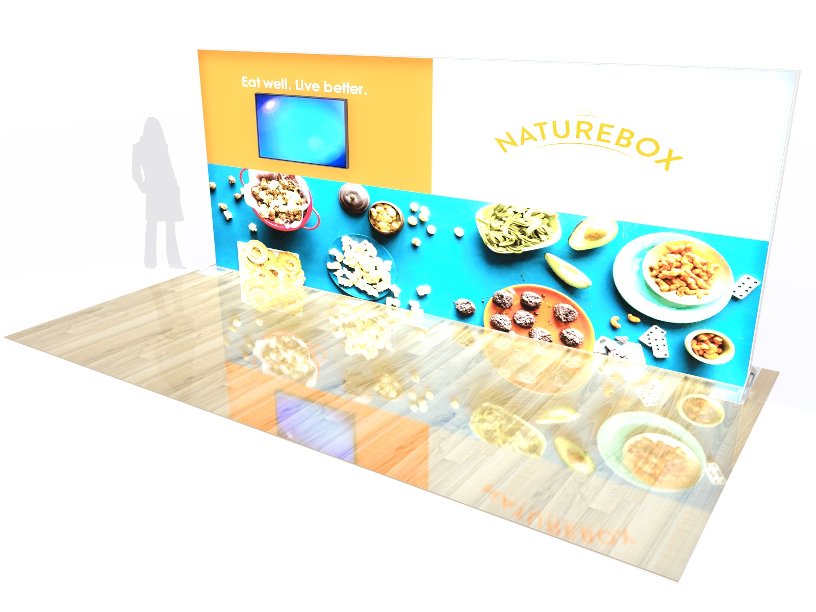 Walk any typical trade show. What do you see? 10 and 20 ft. inlines. Some effective. Many poorly made with low res graphics. For just a little more, you can have an exceptional quality, US made display with a high resolution graphics and a lifetime warranty. The VK-2996 is a big, bold exhibit constructed with an SEG engineered aluminum, silver anodized frame. The exceptionally strong, yet lightweight frame, supports up to a 50 in. LED monitor. 10 ft. and 20 ft. lightbox versions are available, in both one-sided and two-sided lightboxes. Request pricing. You won't believe your eyes the first time you install the HD fabric graphic.