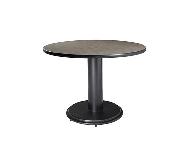 Modern conference table with gray acajou wood laminate top and black base. Dims: 42" L x 42" D x 29" H