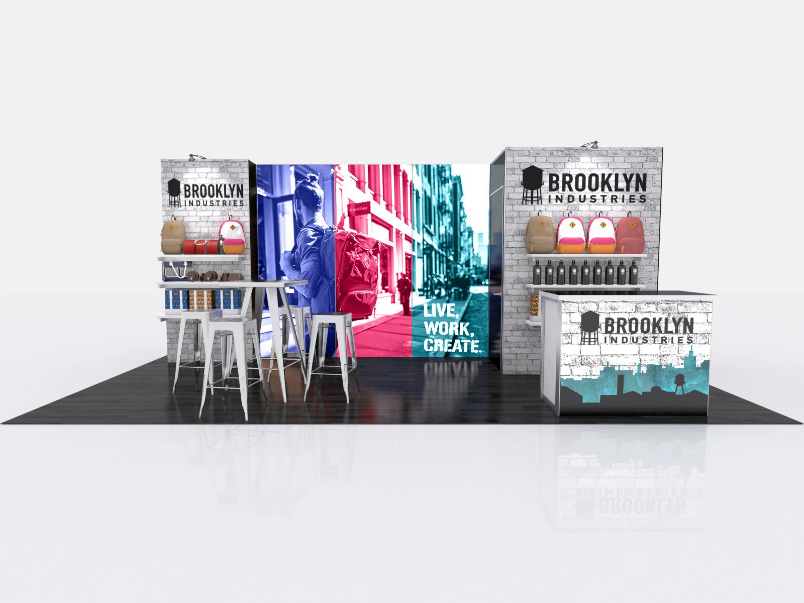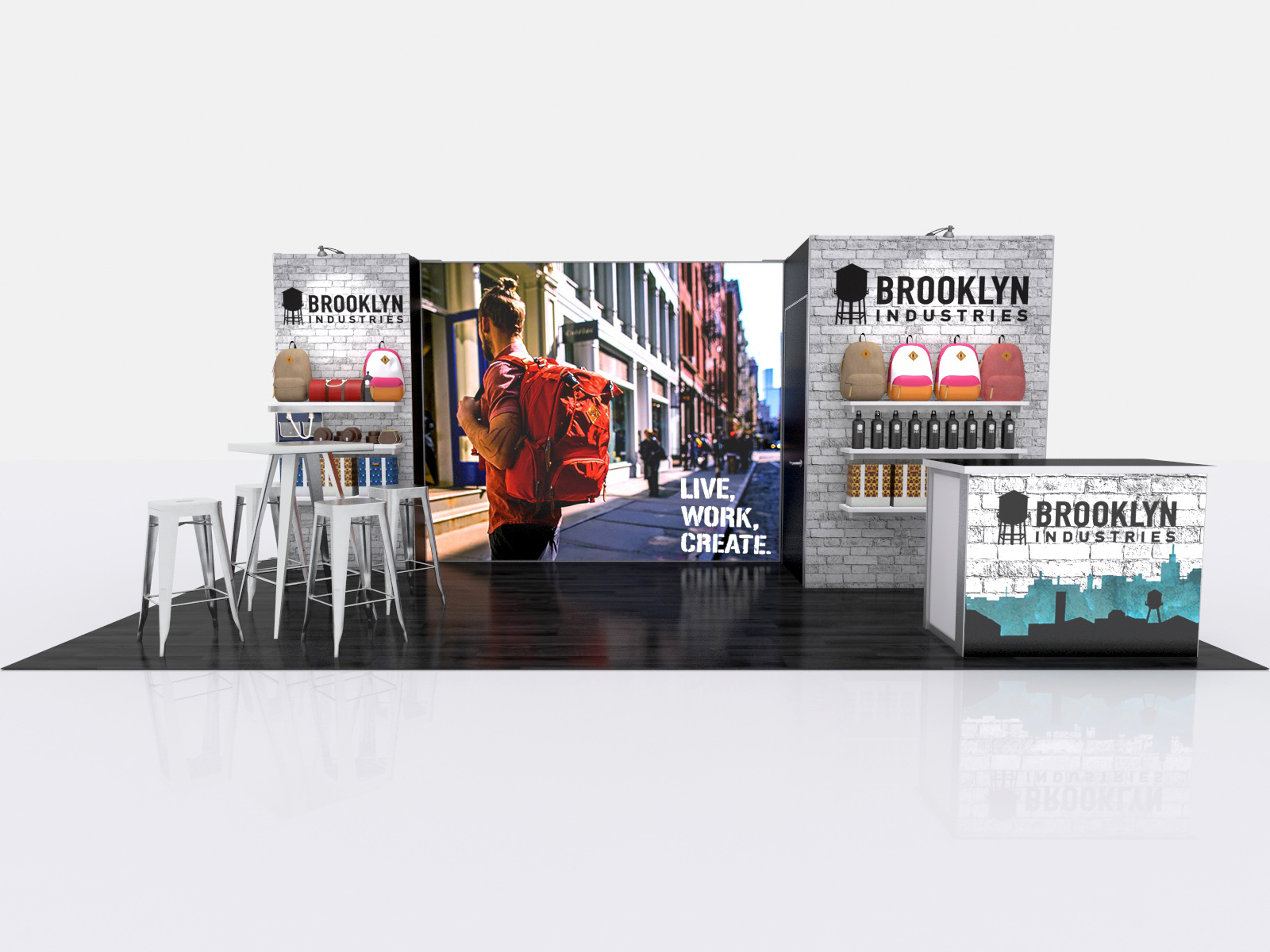 Design flexibility is critical for many exhibitors. Not only do they want to change the graphics depending on the trade show, but they also want the flexibility to add accessories and mix and match the structure. The GK-2022 accomplishes all that while providing the modern exhibitor with product shelves, storage, and a dynamic backlit MOD-1700 reception counter. In addition, the Gravitee One-Step System makes it easy with a mostly tool-free assembly, including the (3) LED Lightboxes. The open floorplan allows for the addition of rental furniture for casual conversations or informal meetings. Plus, because the Gravitee System is modular, expanding the inline into an island design couldn't be easier. For the ultimate tradeshow display, look no further than the GK-2022. Flexibility. Design. Convenience.