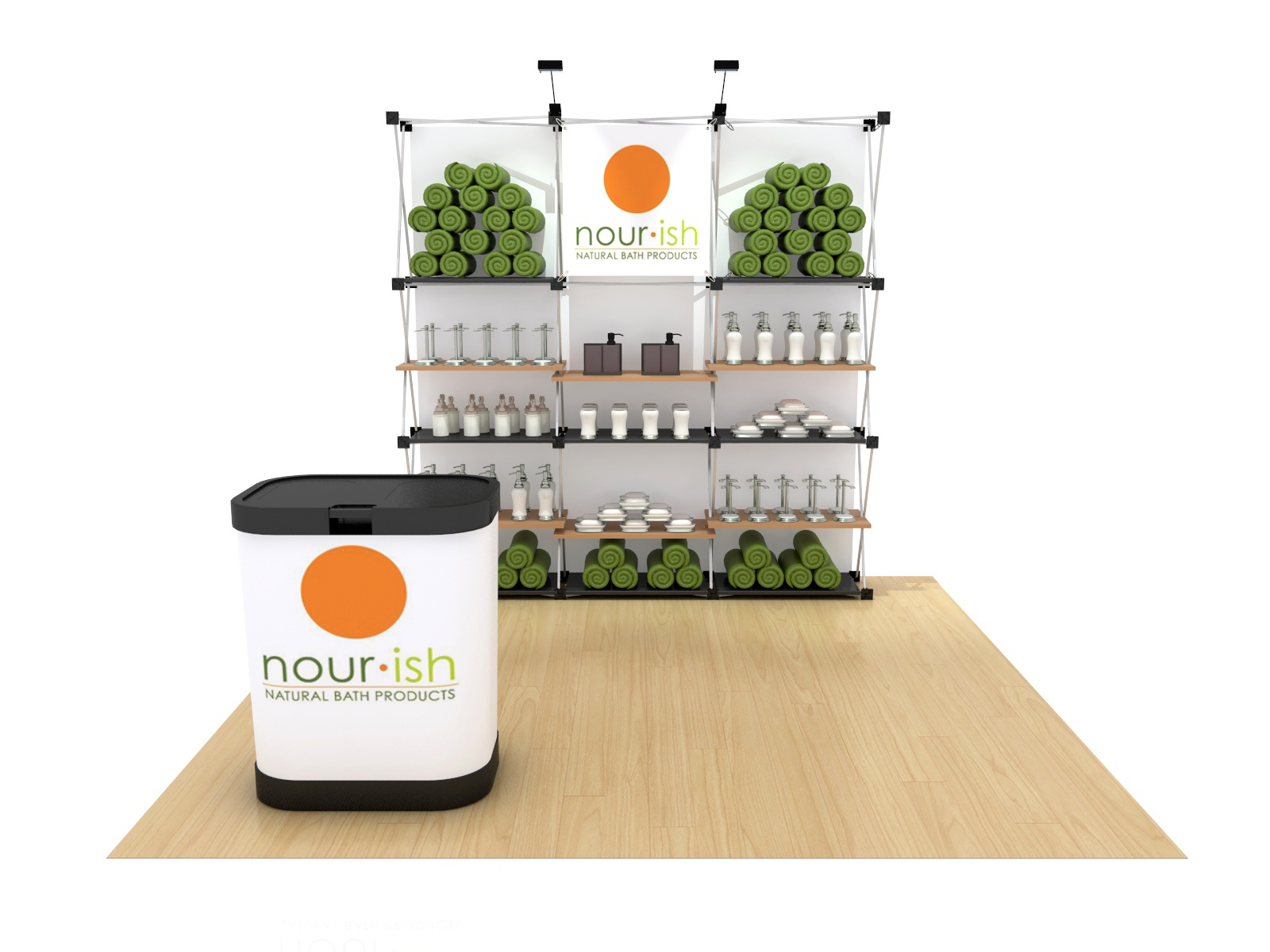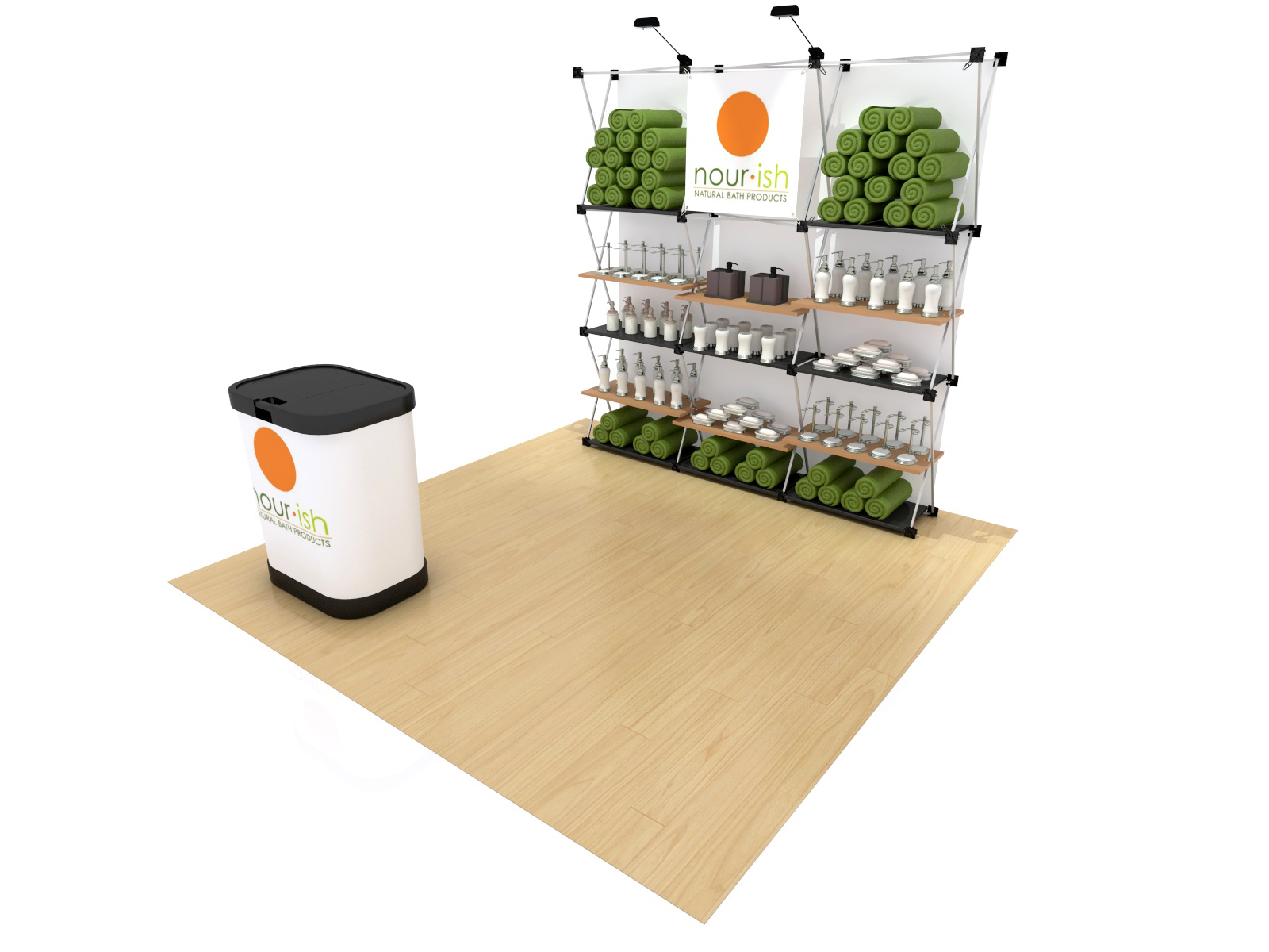 - Optional Lights, Backwall Shelf, and Lycra Wrap